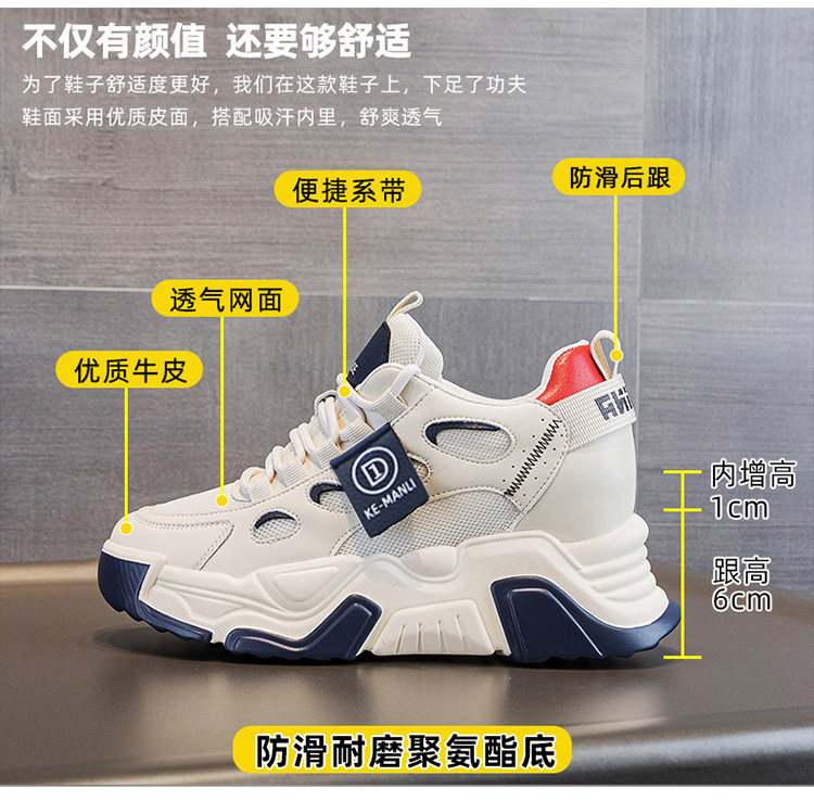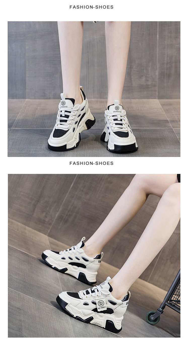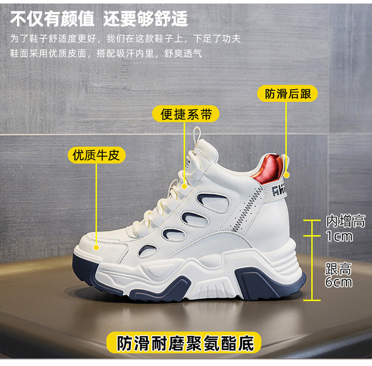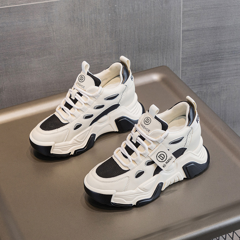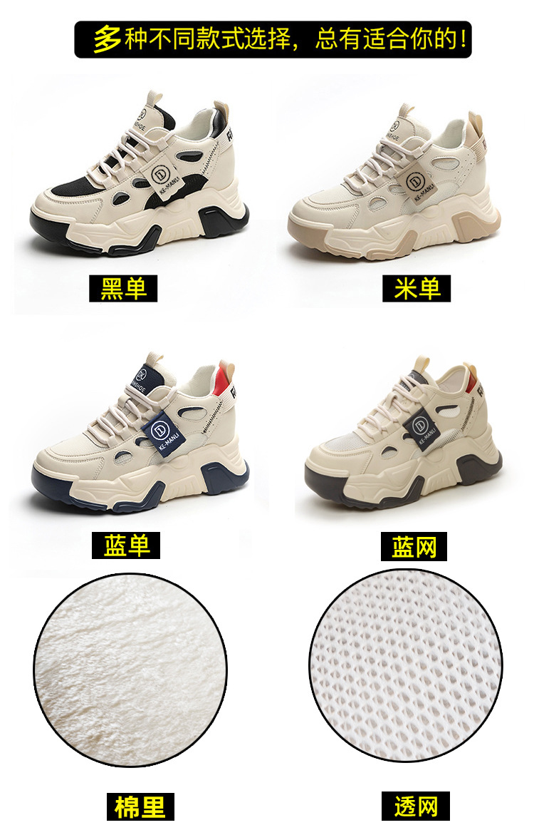 2024 가을과 겨울 여성 신발 새로운 아빠 신발 미드 탑 올 매치 편안한 머핀 두꺼운 바닥 증가 캐주얼 신발 기모스토어 가기