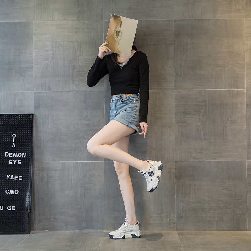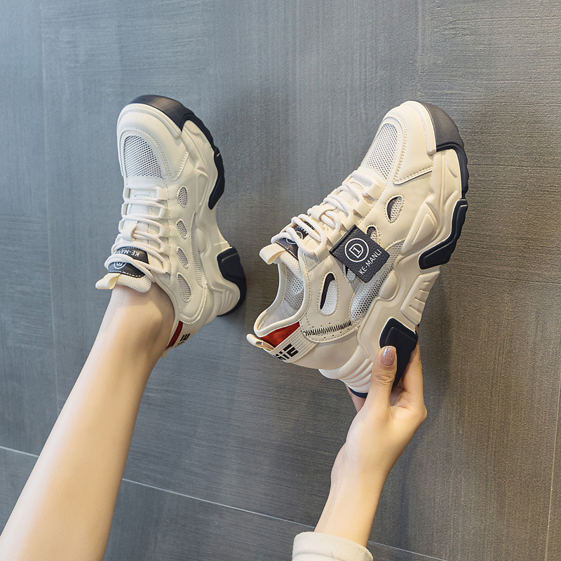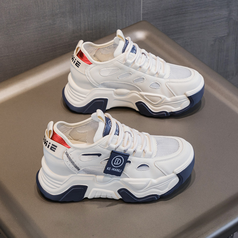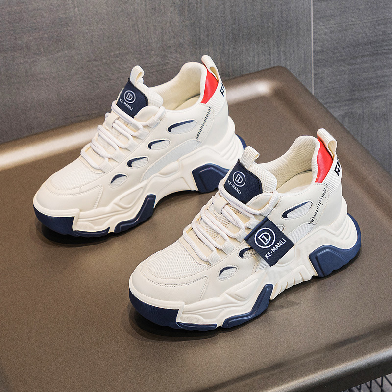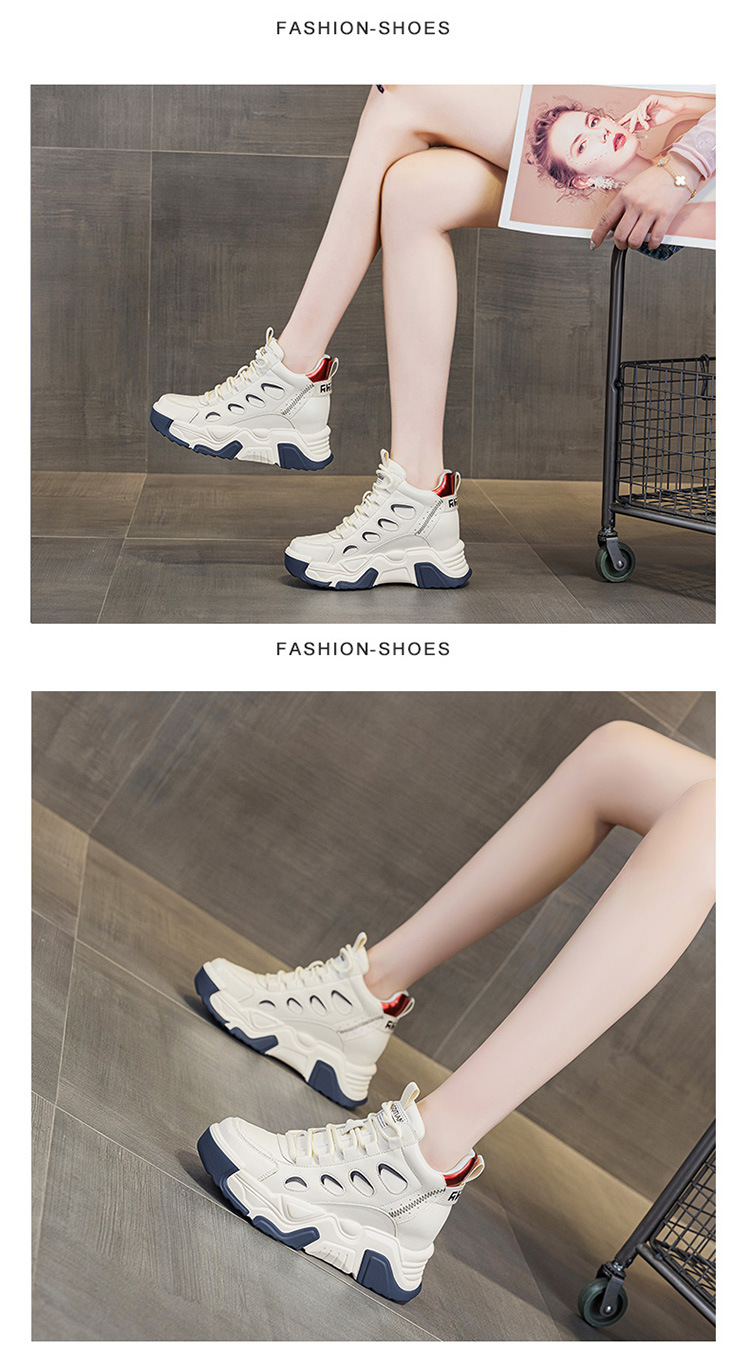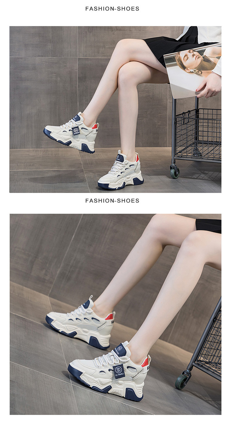 2024 가을과 겨울 여성 신발 새로운 아빠 신발 미드 탑 올 매치 편안한 머핀 두꺼운 바닥 증가 캐주얼 신발 기모스토어 가기