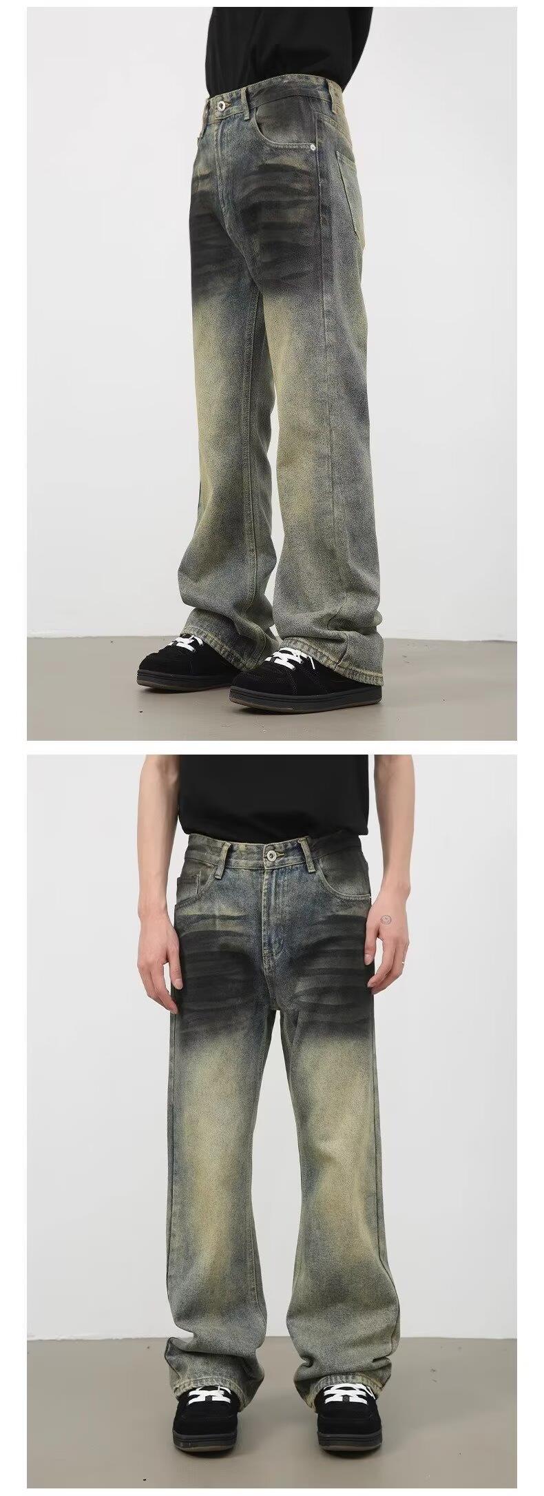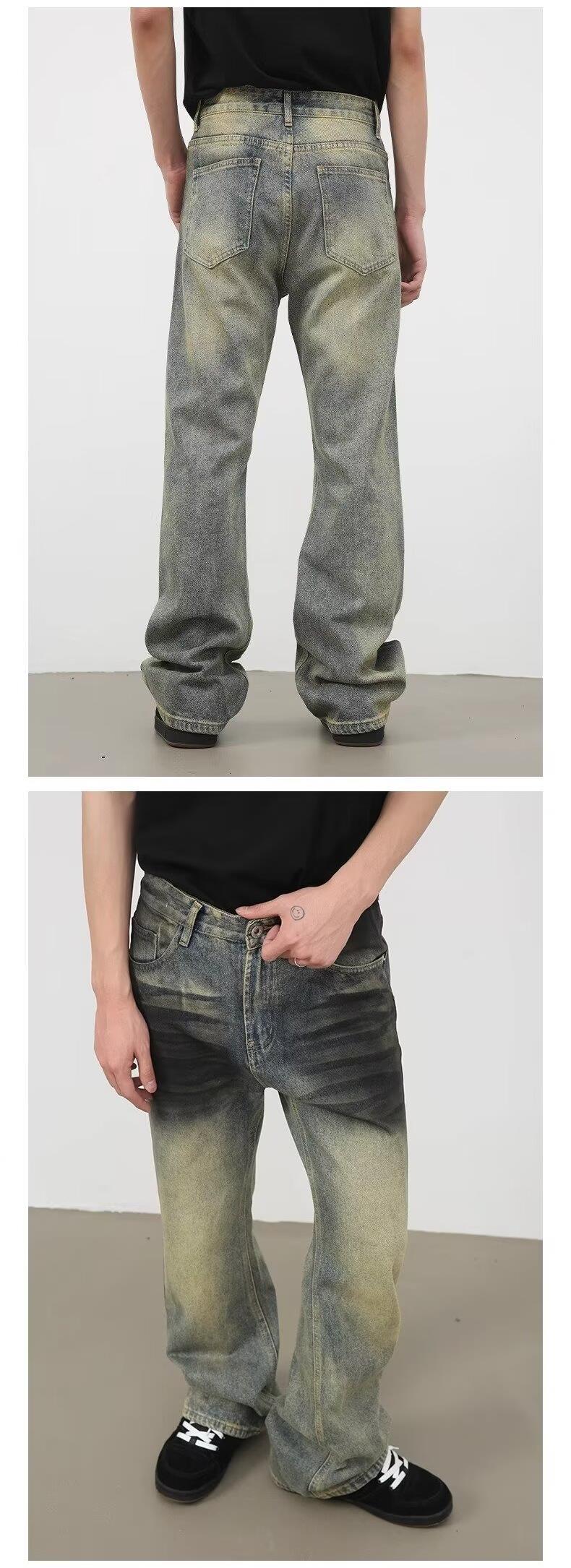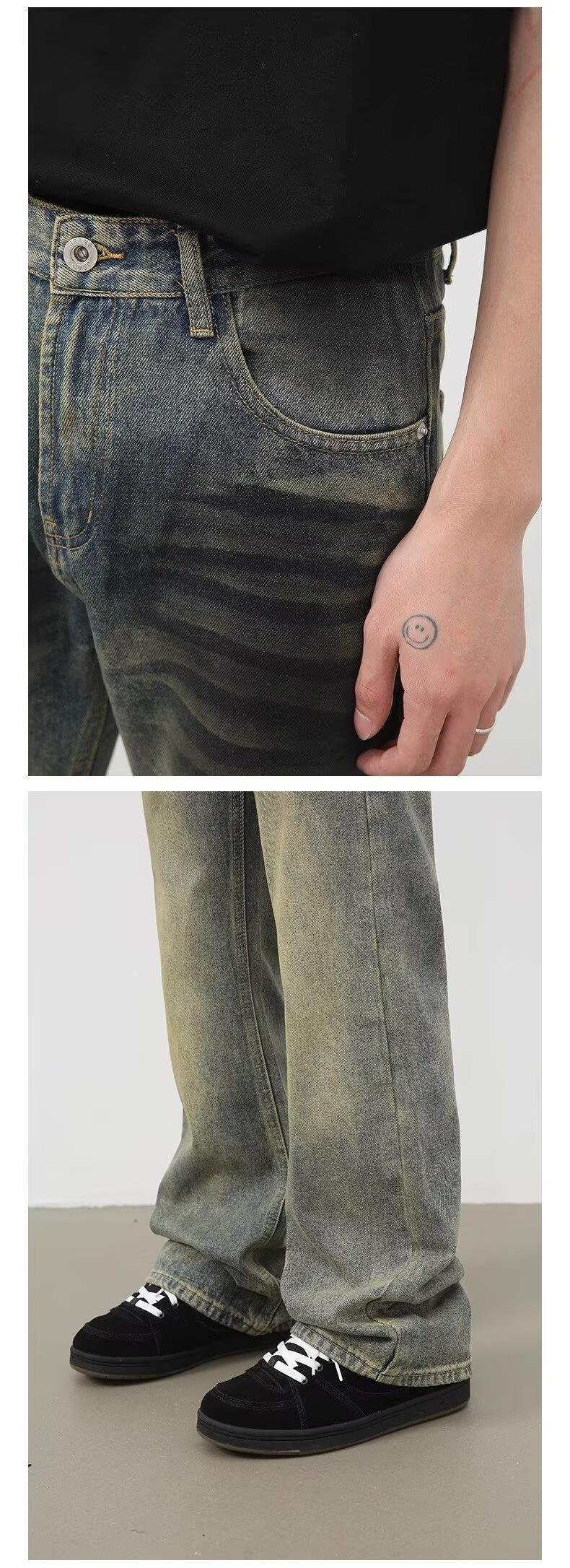 아메리칸 스타일 하이 스트리트 바이브 스타일 옐로우 머드 염료 청바지 남성용 패션 브랜드 루즈 스트레이트 튜브 마이크로 혼 롱 팬츠스토어 가기