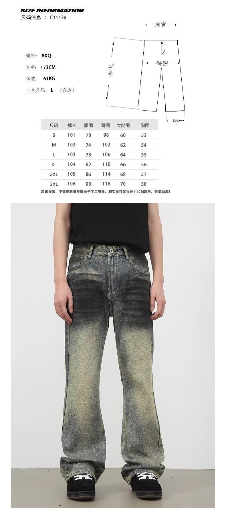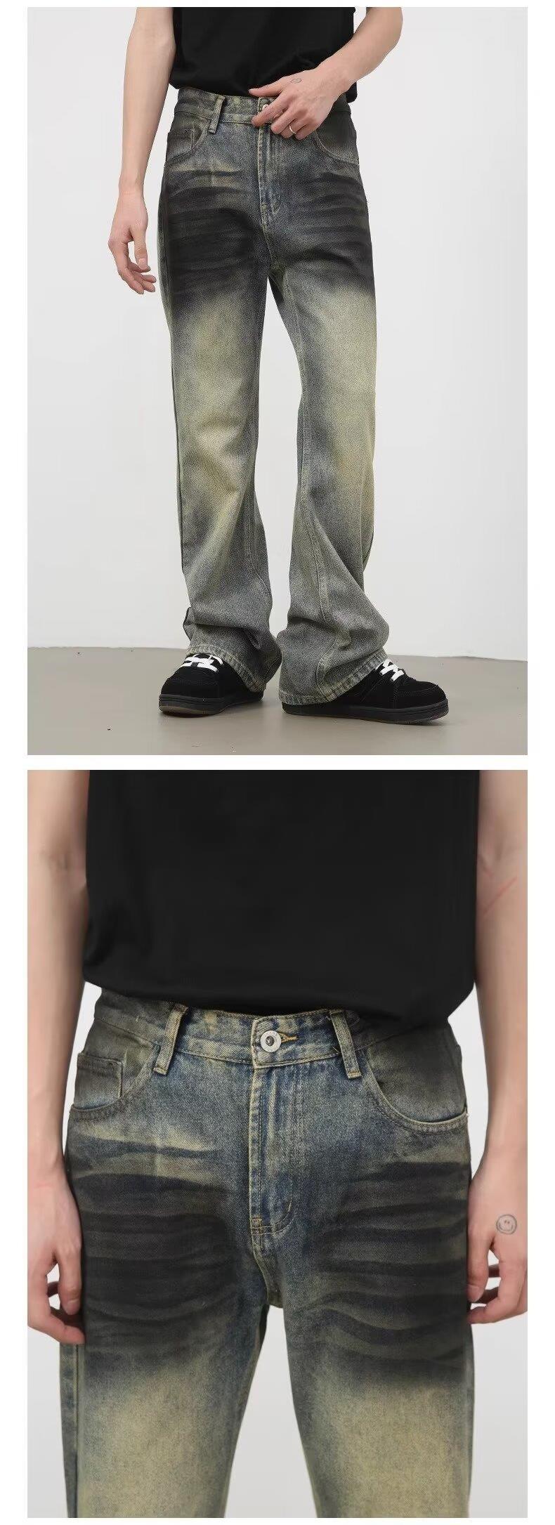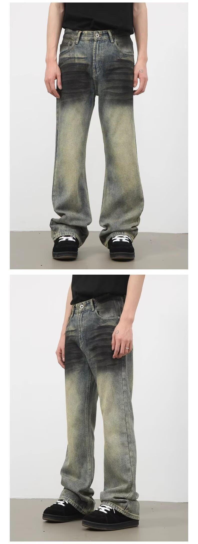 아메리칸 스타일 하이 스트리트 바이브 스타일 옐로우 머드 염료 청바지 남성용 패션 브랜드 루즈 스트레이트 튜브 마이크로 혼 롱 팬츠스토어 가기