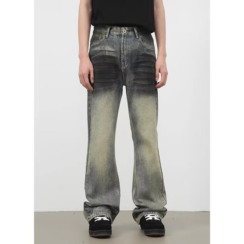 아메리칸 스타일 하이 스트리트 바이브 스타일 옐로우 머드 염료 청바지 남성용 패션 브랜드 루즈 스트레이트 튜브 마이크로 혼 롱 팬츠