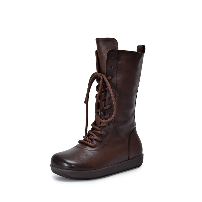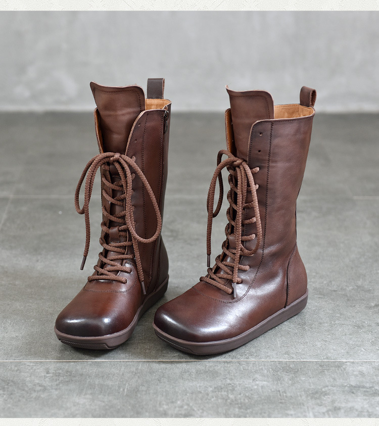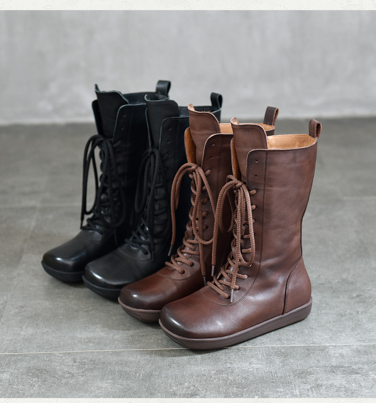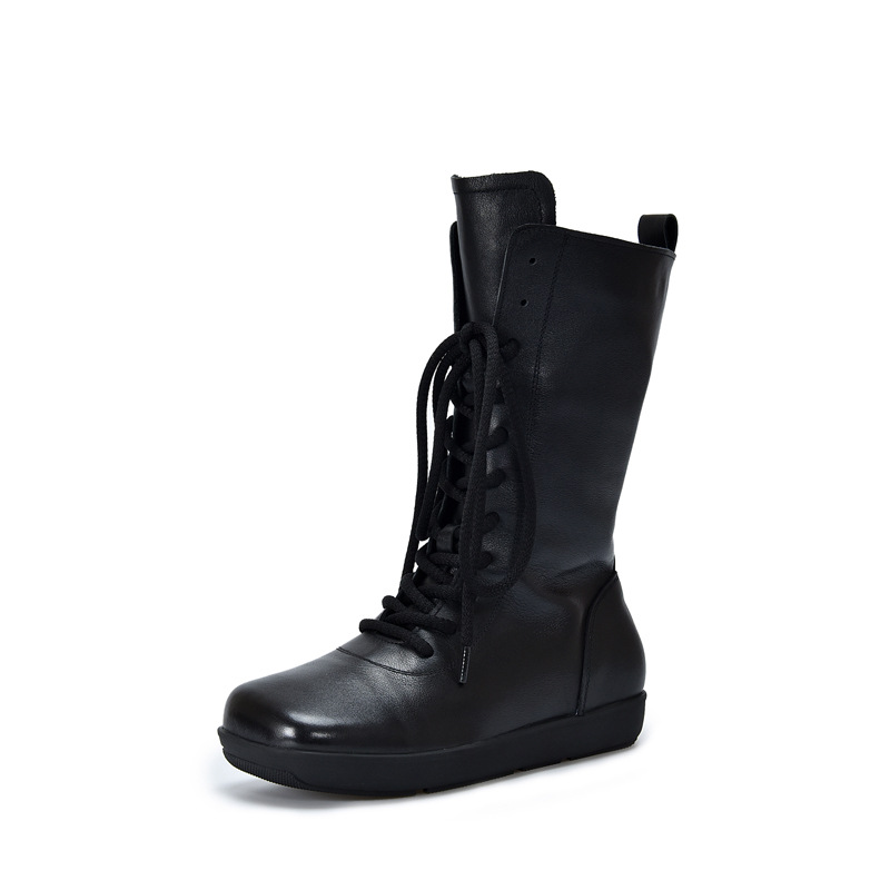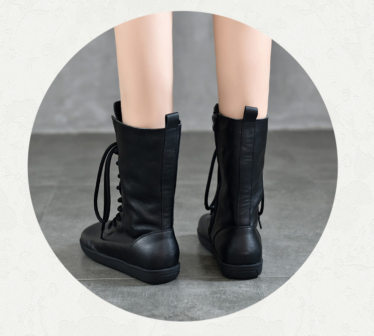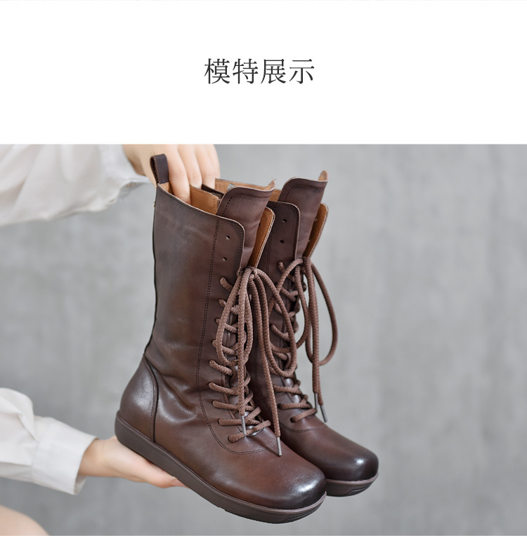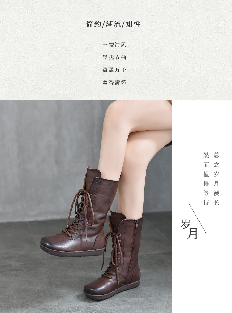 【특가 185】천연 소가죽 중간 길이 부츠 여성용 가죽 부츠 사각코 마틴 부츠 플러스 벨벳 코튼 부츠