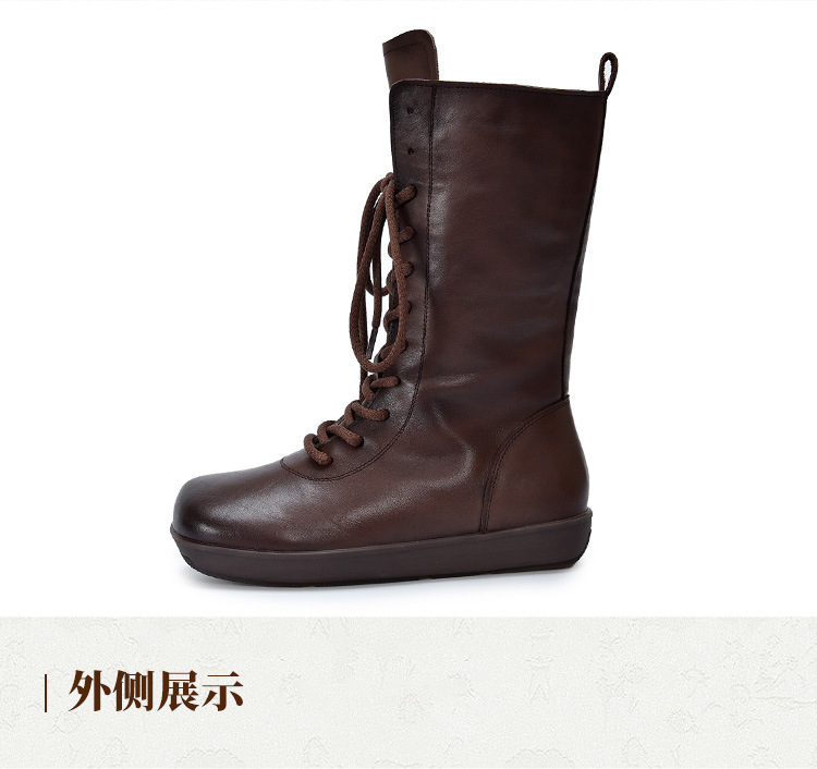 【특가 185】천연 소가죽 중간 길이 부츠 여성용 가죽 부츠 사각코 마틴 부츠 플러스 벨벳 코튼 부츠스토어 가기