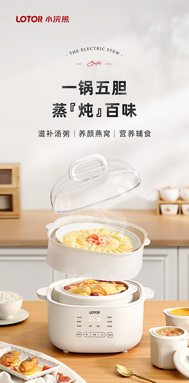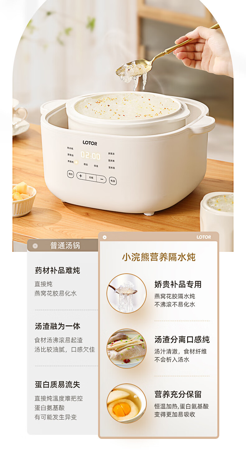 작은 너구리 전기 스튜 냄비 가정용 전기 스튜 냄비 스튜 수프 냄비 스튜 수프 냄비 아기 음식 보충 냄비 새 둥지 스튜 큰스토어 가기