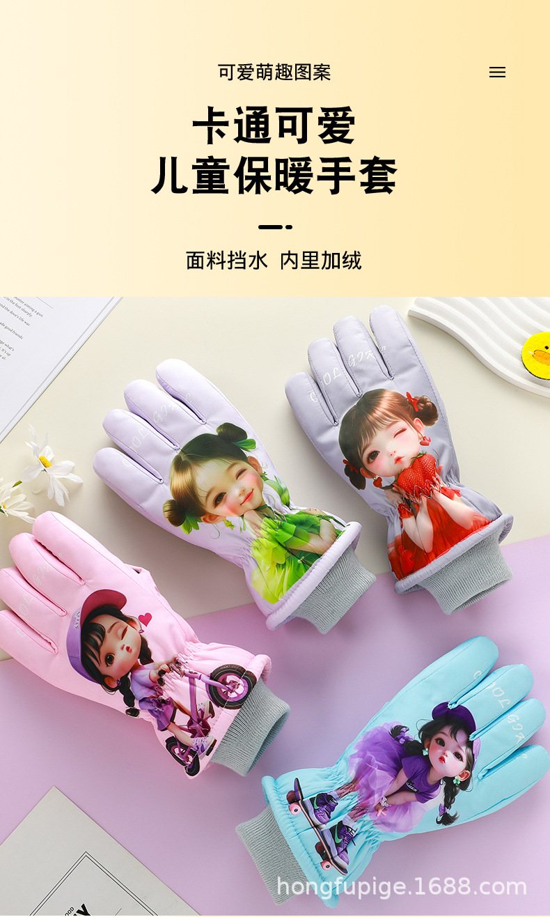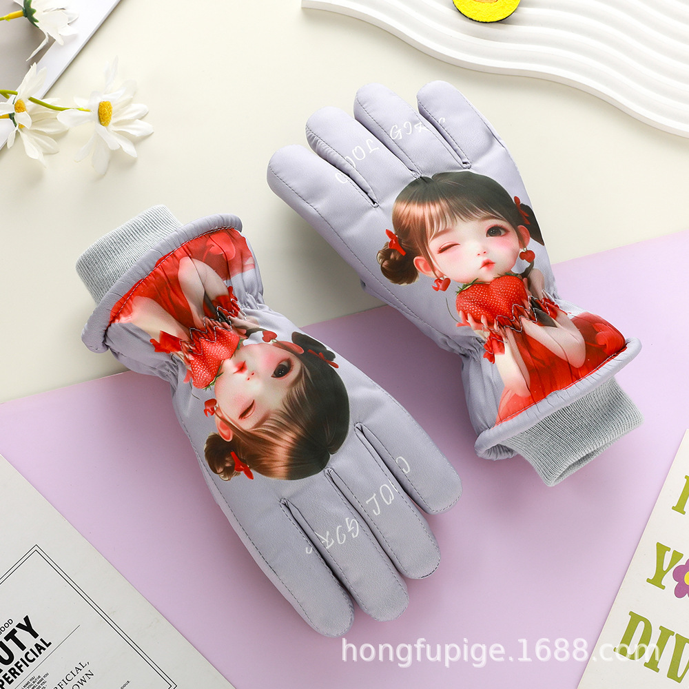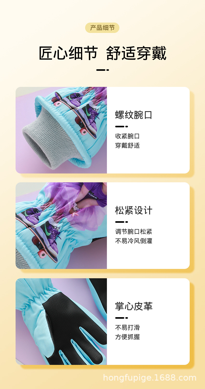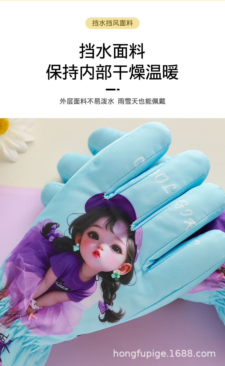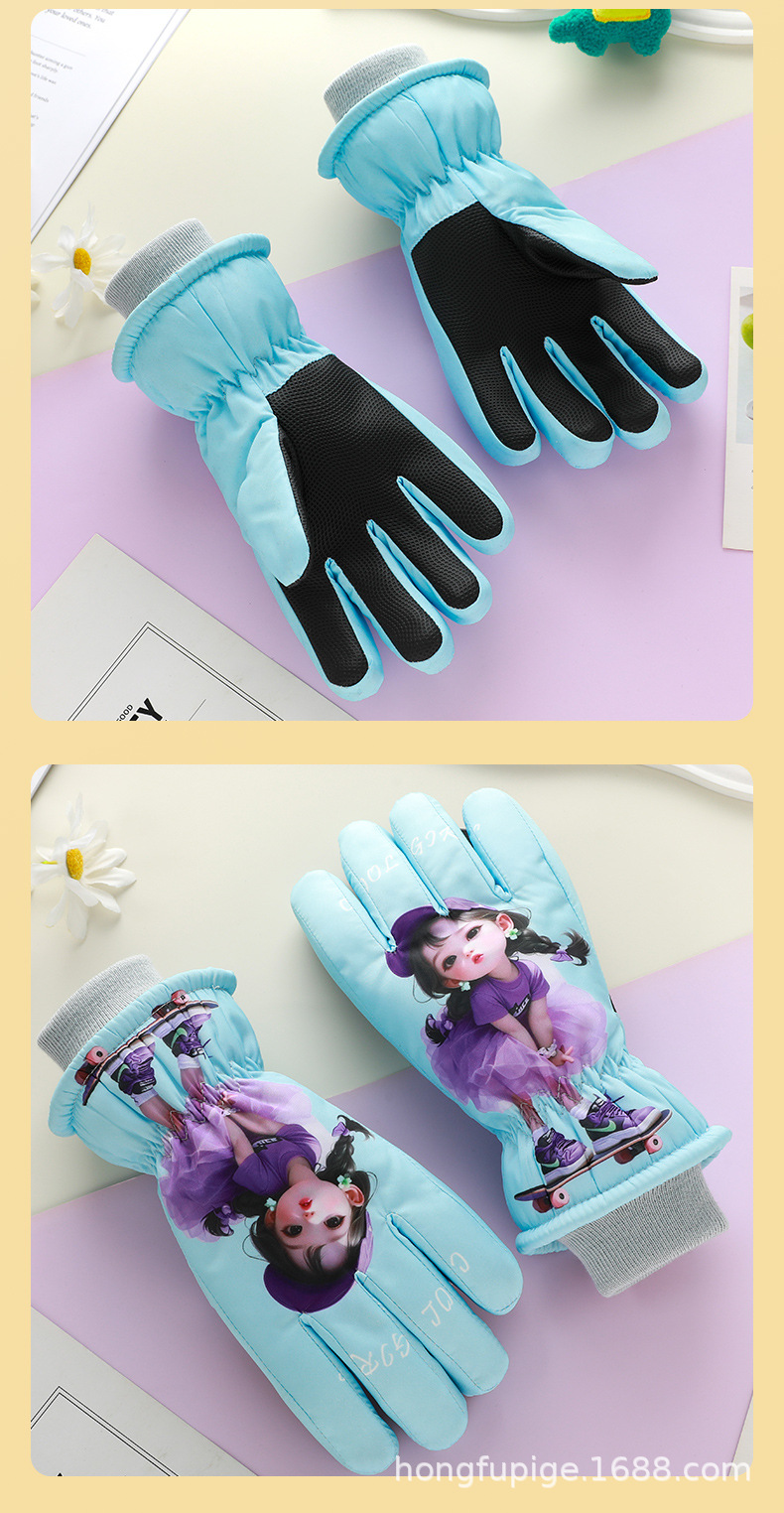 어린이 스키 장갑 따뜻한 발수 겨울 기모 소년 소녀를위한 두꺼운 야외 눈 방지 감기 장갑