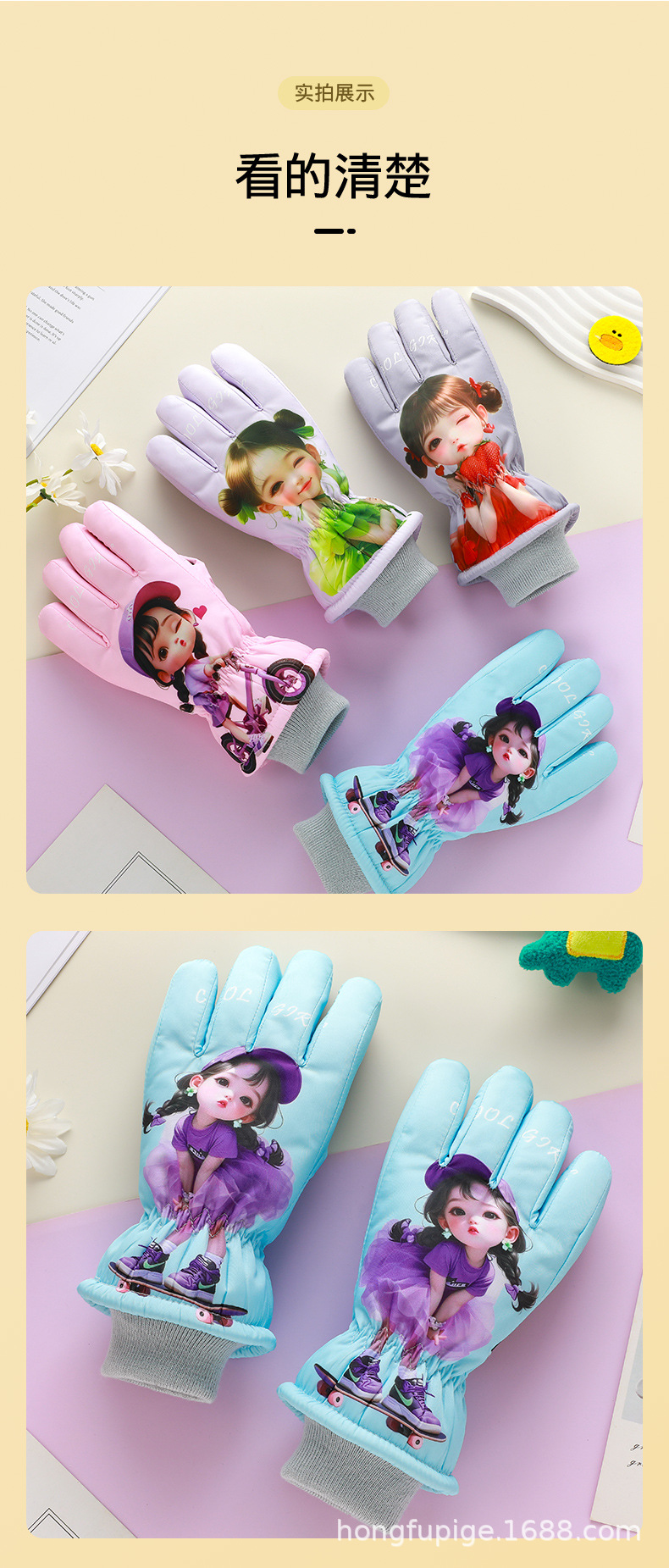 어린이 스키 장갑 따뜻한 발수 겨울 기모 소년 소녀를위한 두꺼운 야외 눈 방지 감기 장갑스토어 가기