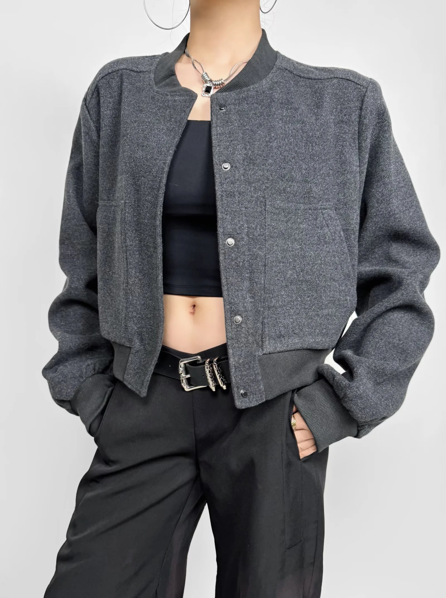 모직 쇼트 코트 2024 가을 새로운 캐주얼 디자인 유럽과 미국 스타일의 하이 엔드 야구 세트 재킷