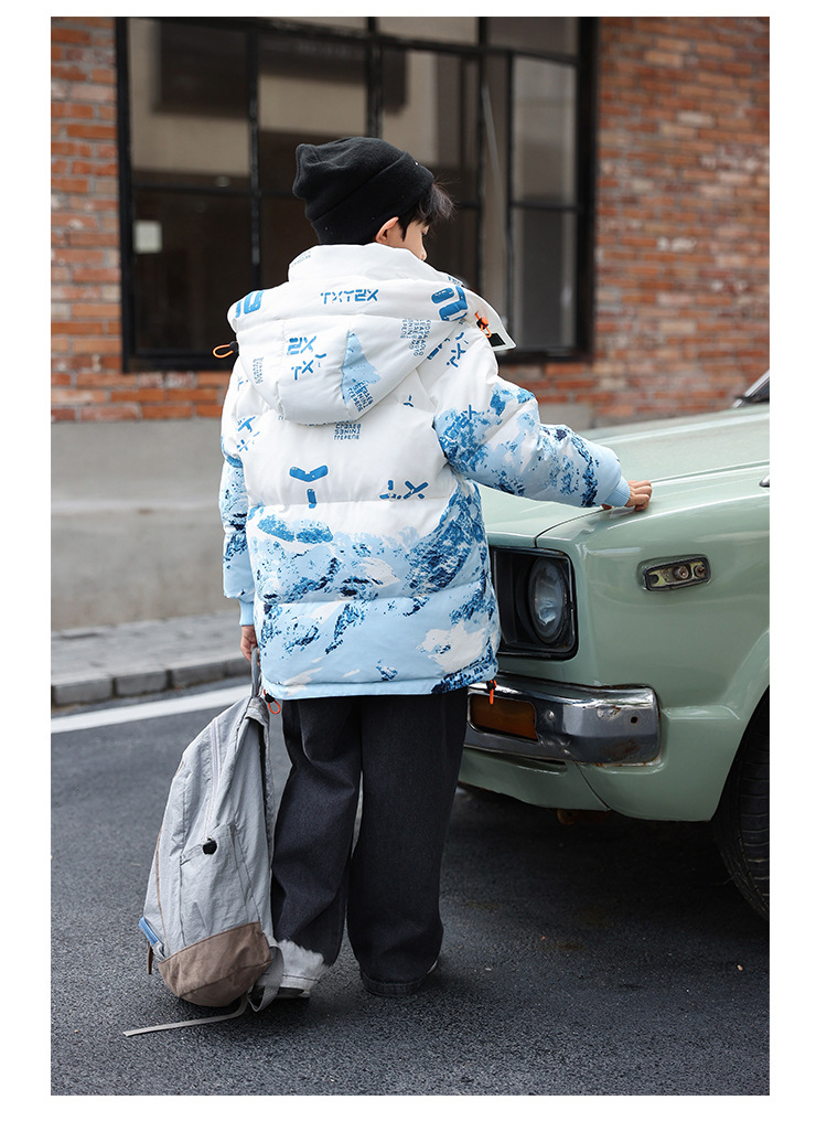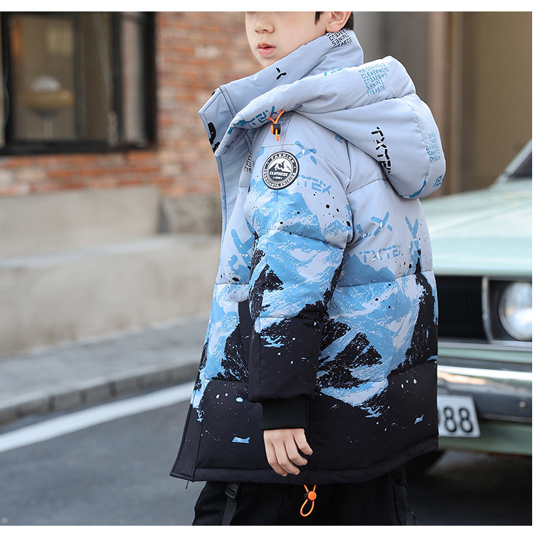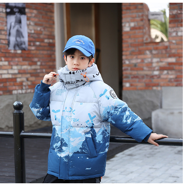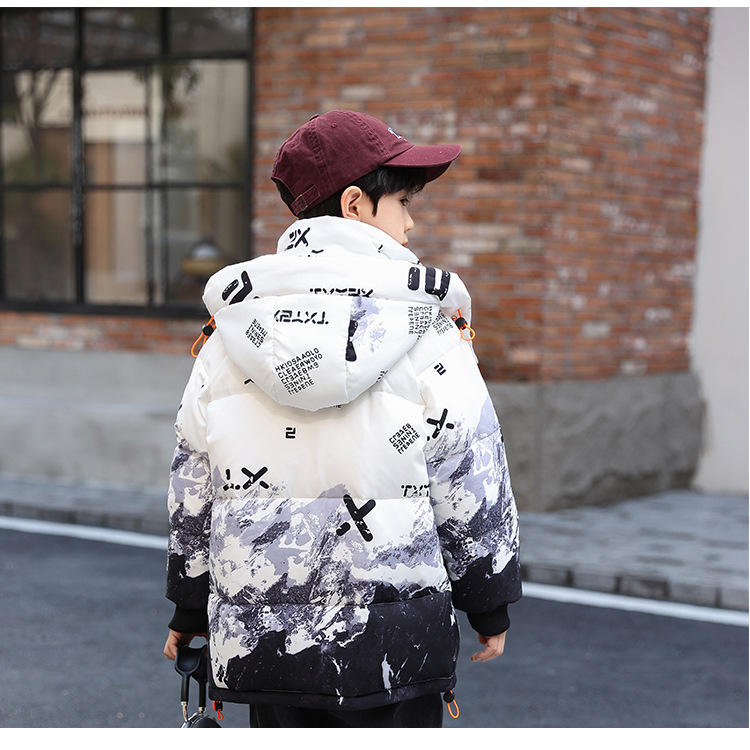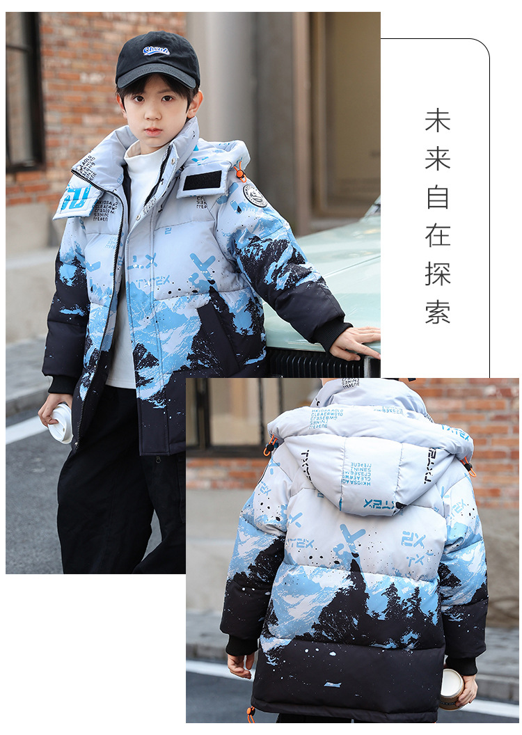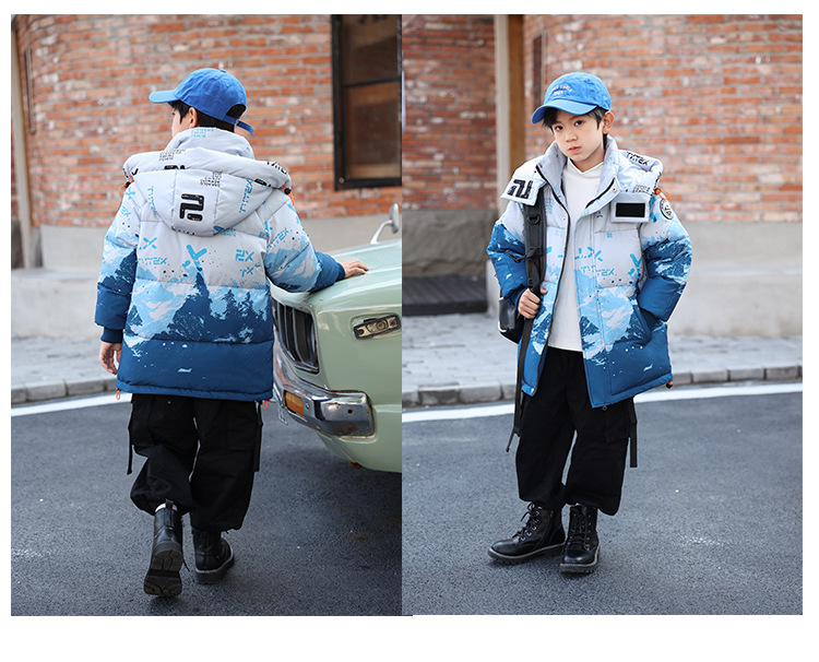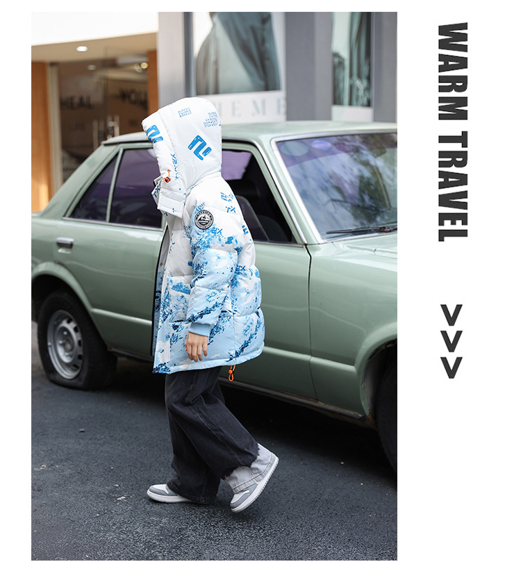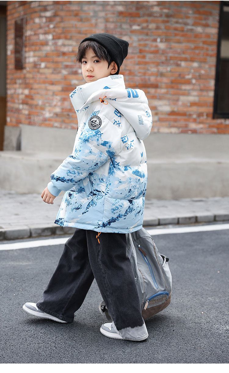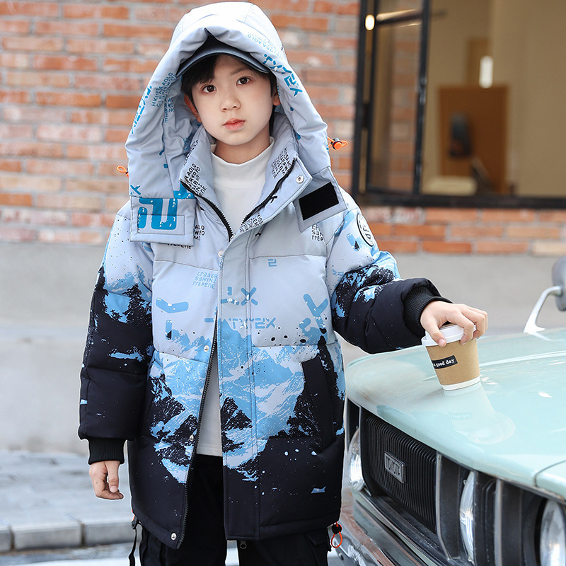어린이 착용 소년 다운 재킷 2023 년 중반 겨울 착용 새로운 스타일 중대형 어린이 흰색 오리 두꺼운 따뜻한 재킷 트렌디스토어 가기