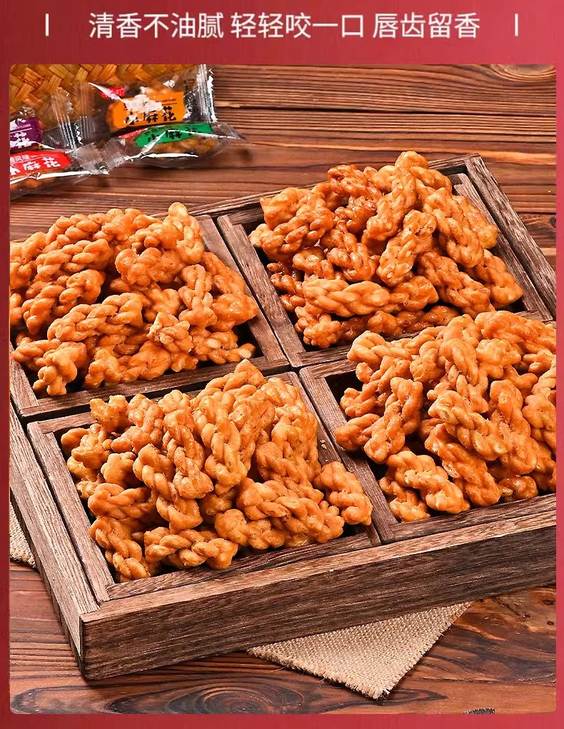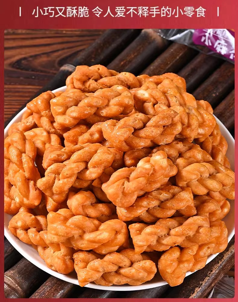 바삭한 다크 브라운 설탕 작은 트위스트 스낵 단일 독립 작은 포장 수제 케이크 심장 비스킷 스낵 스낵 식품 도매