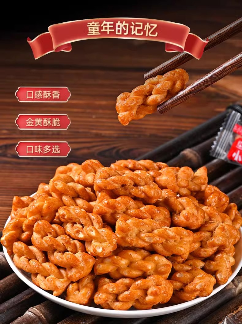 바삭한 다크 브라운 설탕 작은 트위스트 스낵 단일 독립 작은 포장 수제 케이크 심장 비스킷 스낵 스낵 식품 도매스토어 가기