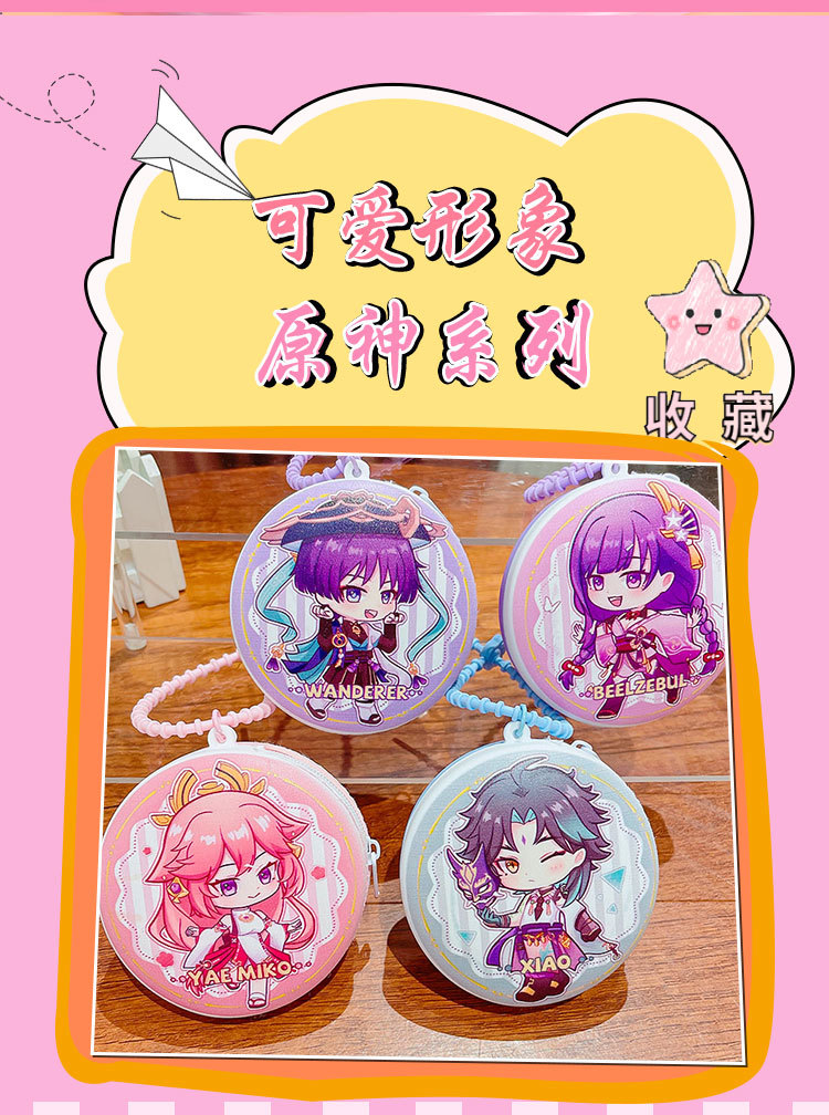 만화 미니 원신 동전 지갑 열쇠고리 가방 장식 커플 자동차 가방 열쇠고리 작은 장식품스토어 가기