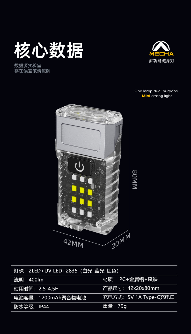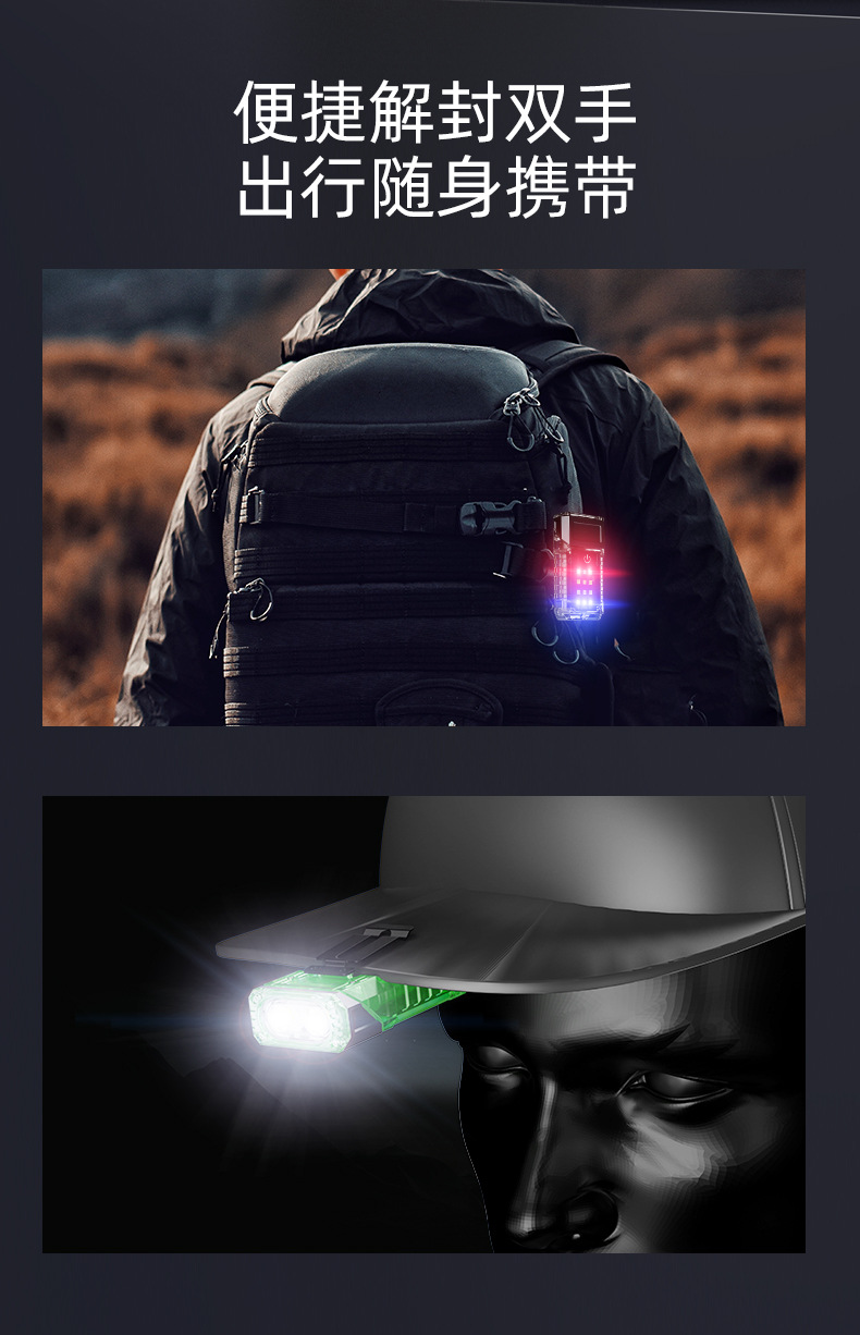 야외 손전등 모바일 충전 회전 조절 가능한 캡 클립 다기능 LED 미니 작업 램프 손전등