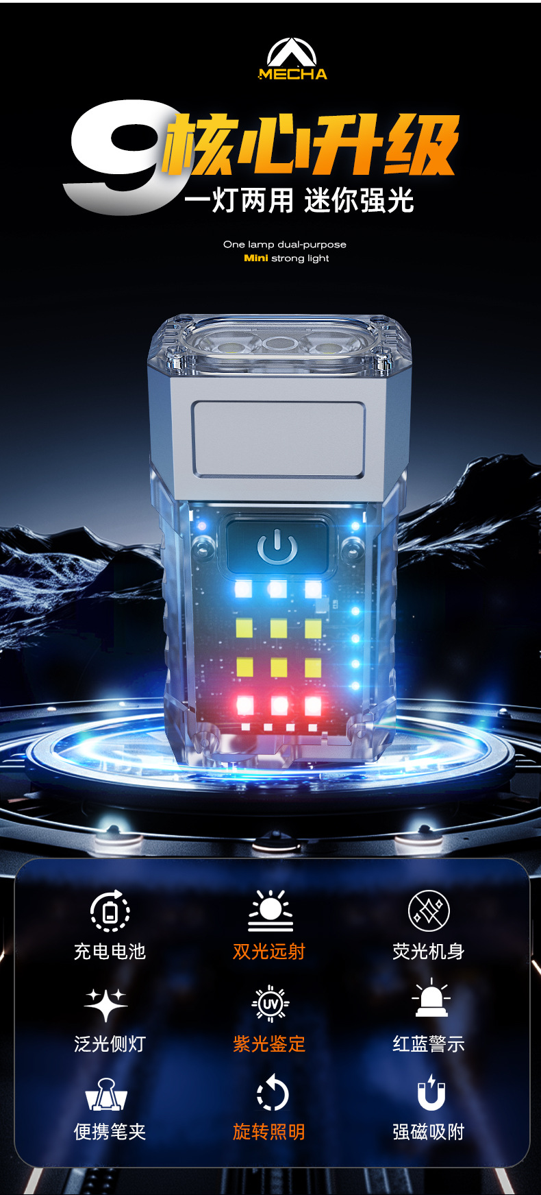 야외 손전등 모바일 충전 회전 조절 가능한 캡 클립 다기능 LED 미니 작업 램프 손전등스토어 가기