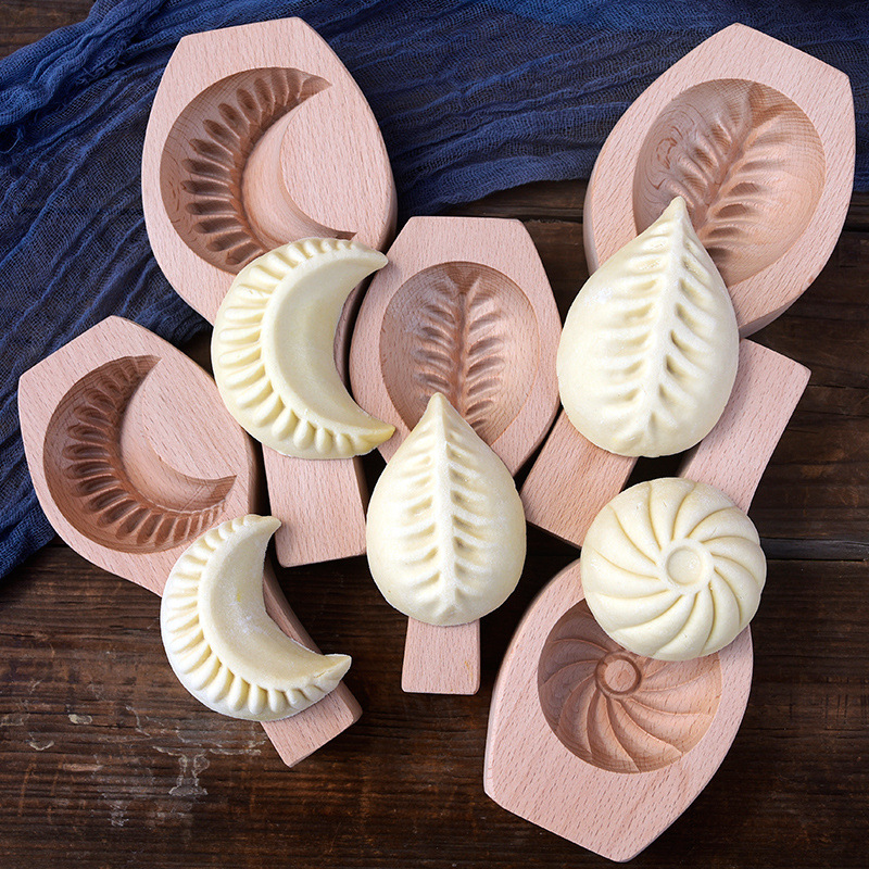 찐 빵 만들기 버들 초승달 찐 빵 곰팡이 찐 만두 패턴 페이스트리 하트 문 케이크 단단한 나무 집 유물 녹색 그룹