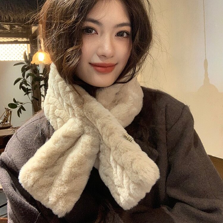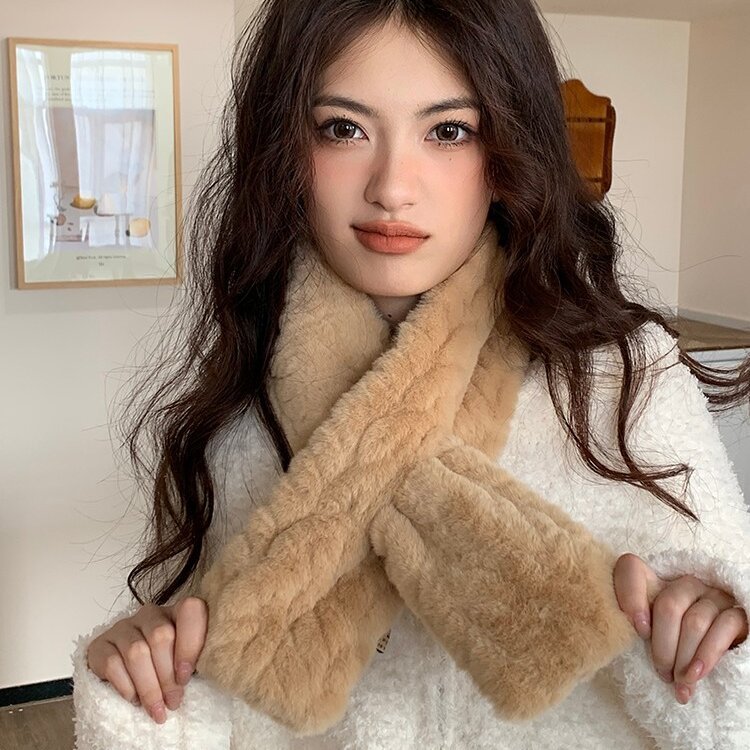 부드러운 밀랍 모피 스카프의 두꺼운 버전 여성용 단색 올 매치 크로스 짧은 모조 렉스 토끼 스카프 가을과 겨울 모피 칼라