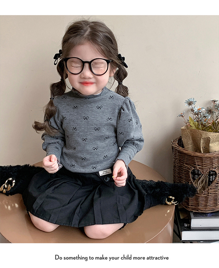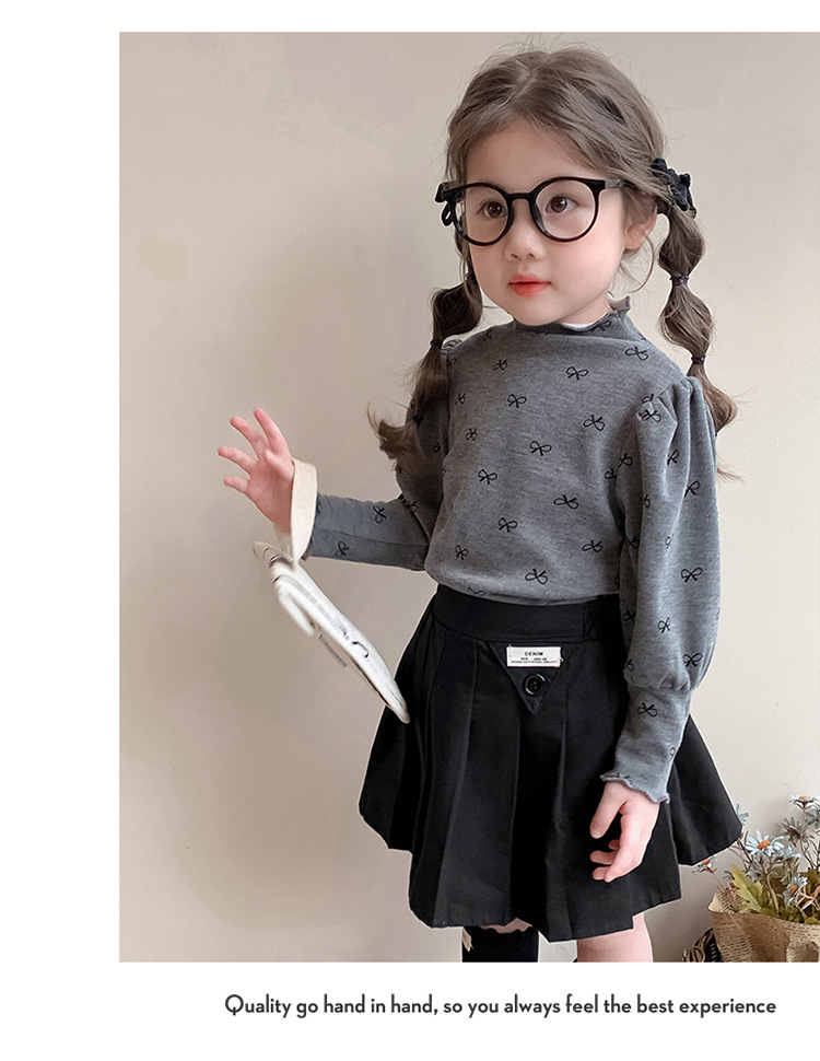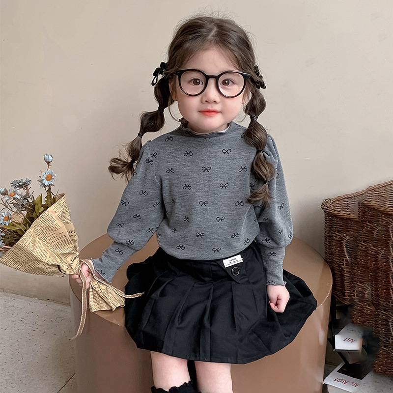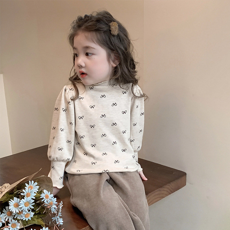 소녀의 봄과 가을 얇은 양털베이스 셔츠 서양식 올매치 어린이 긴팔 티셔츠 소녀 가을과 겨울 이너 탑스토어 가기