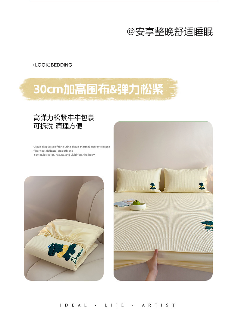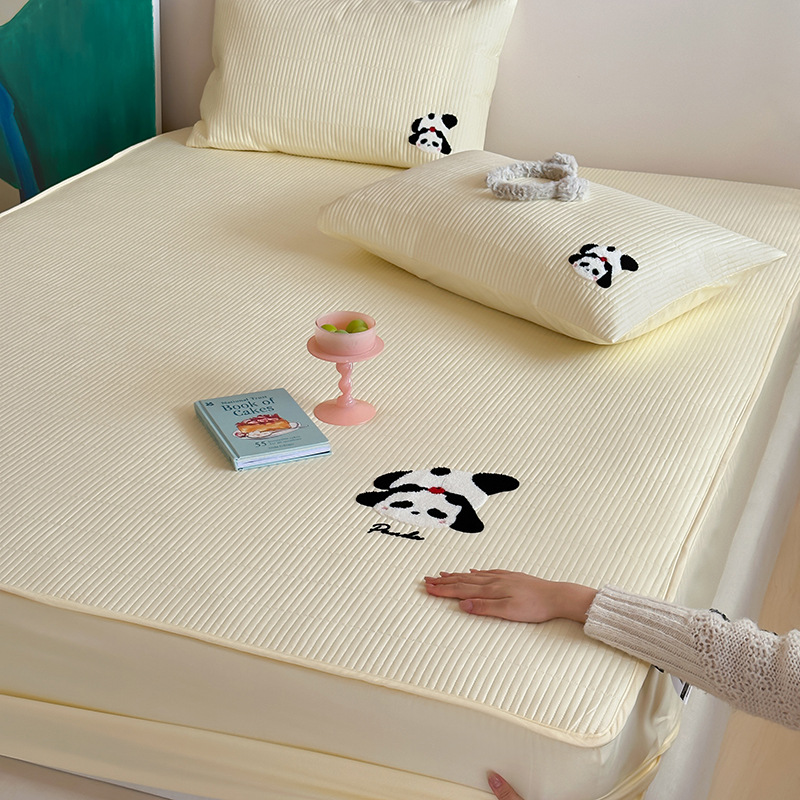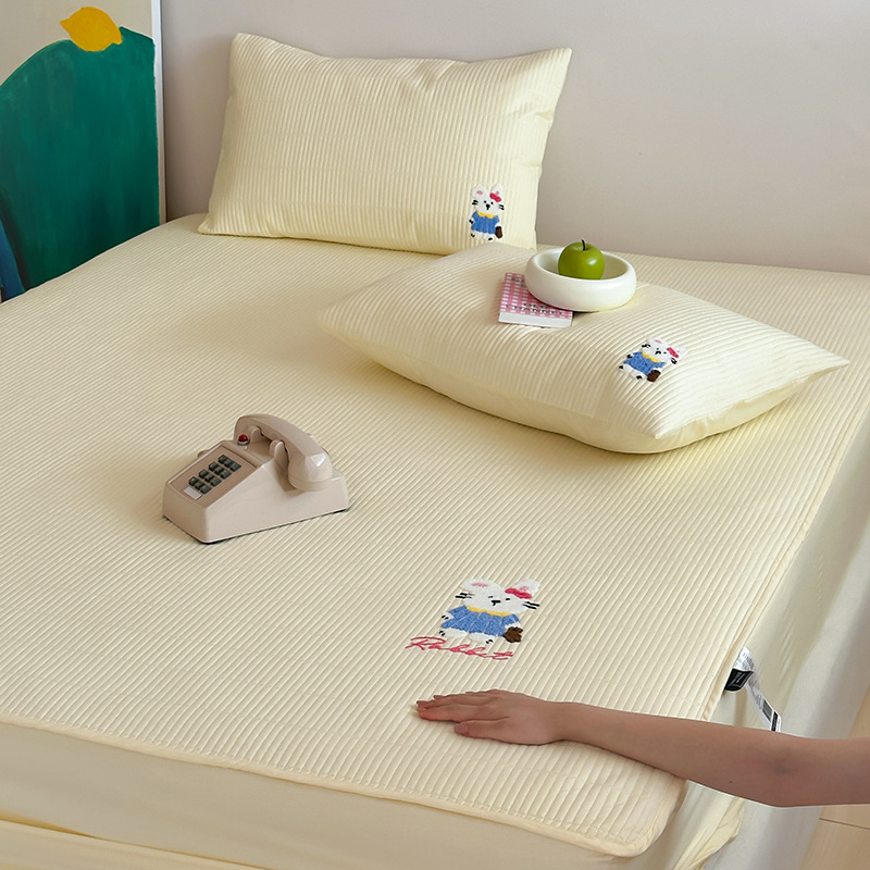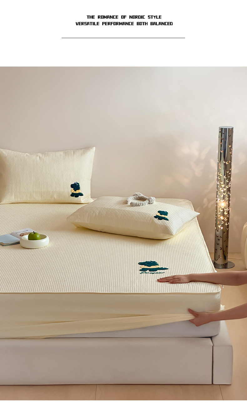 Moe의 면화 타월 자수 패딩 면화 침대 커버 완전히 밀폐 된 매트리스 보호 커버 가열 된 360 면 단일 조각 침대보