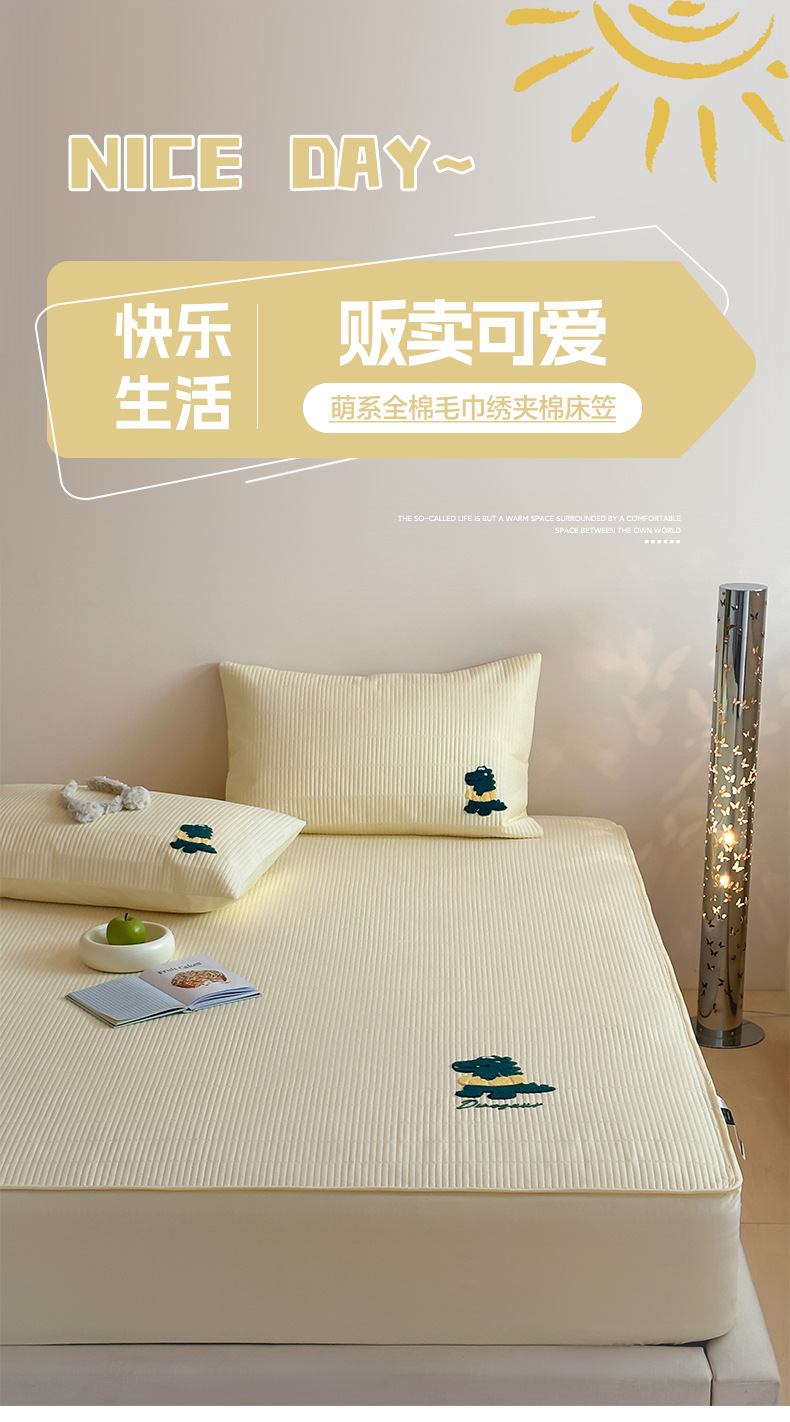 Moe의 면화 타월 자수 패딩 면화 침대 커버 완전히 밀폐 된 매트리스 보호 커버 가열 된 360 면 단일 조각 침대보스토어 가기