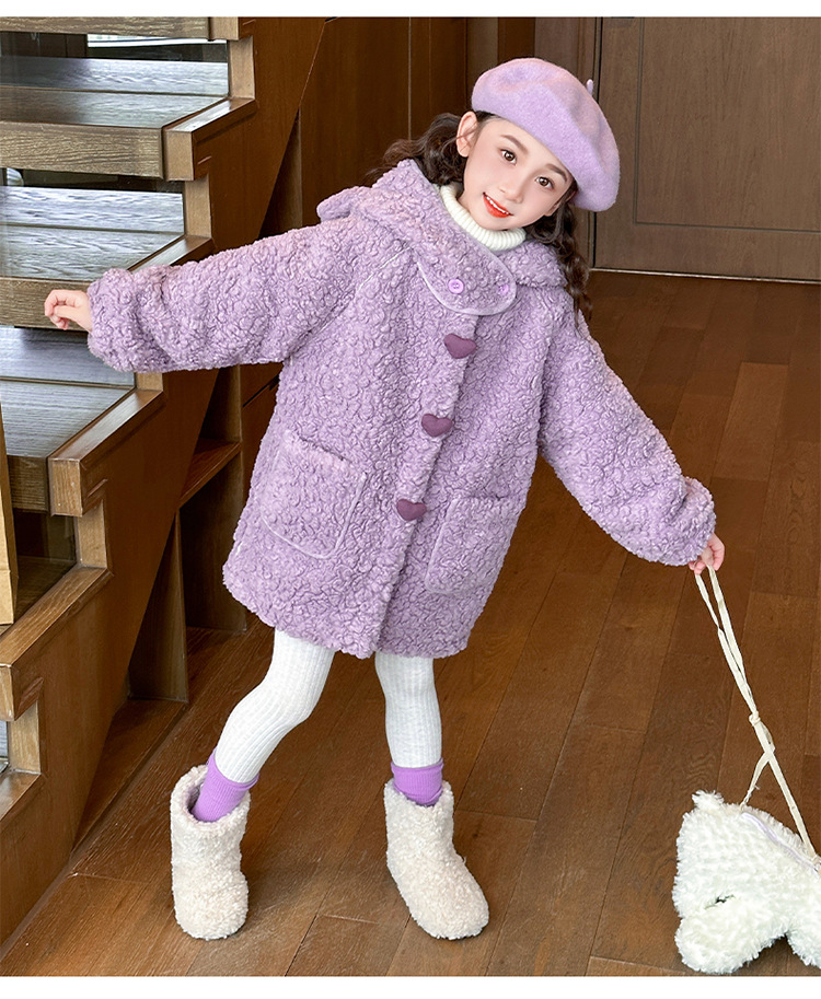 걸스 후드 모직 스웨터 기모 따뜻한 봉제 자켓 2024 가을과 겨울 새로운 느슨한 면 패딩 코트