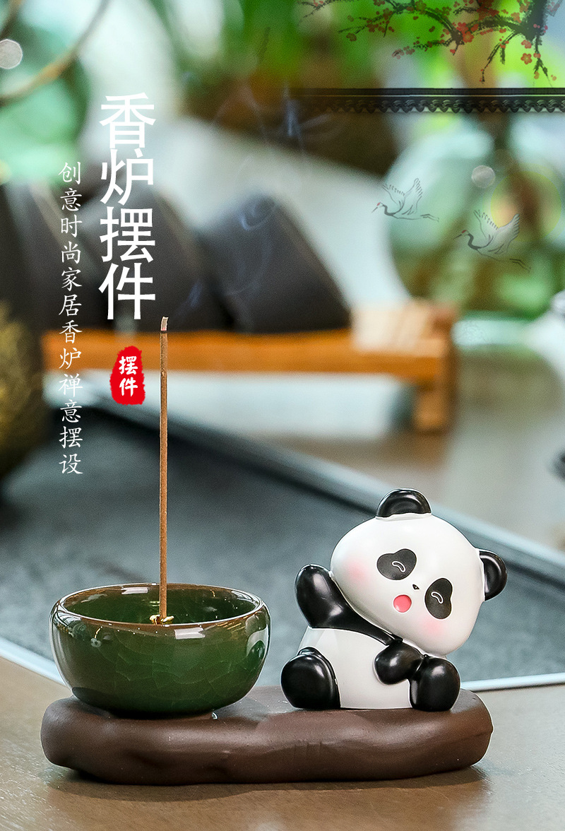 국조 팬더 세라믹 향 버너 샌달 우드 라인 향 버너 세라믹 아로마 테라피 버너 다방 데스크탑 장식품 레저 향 액세서리