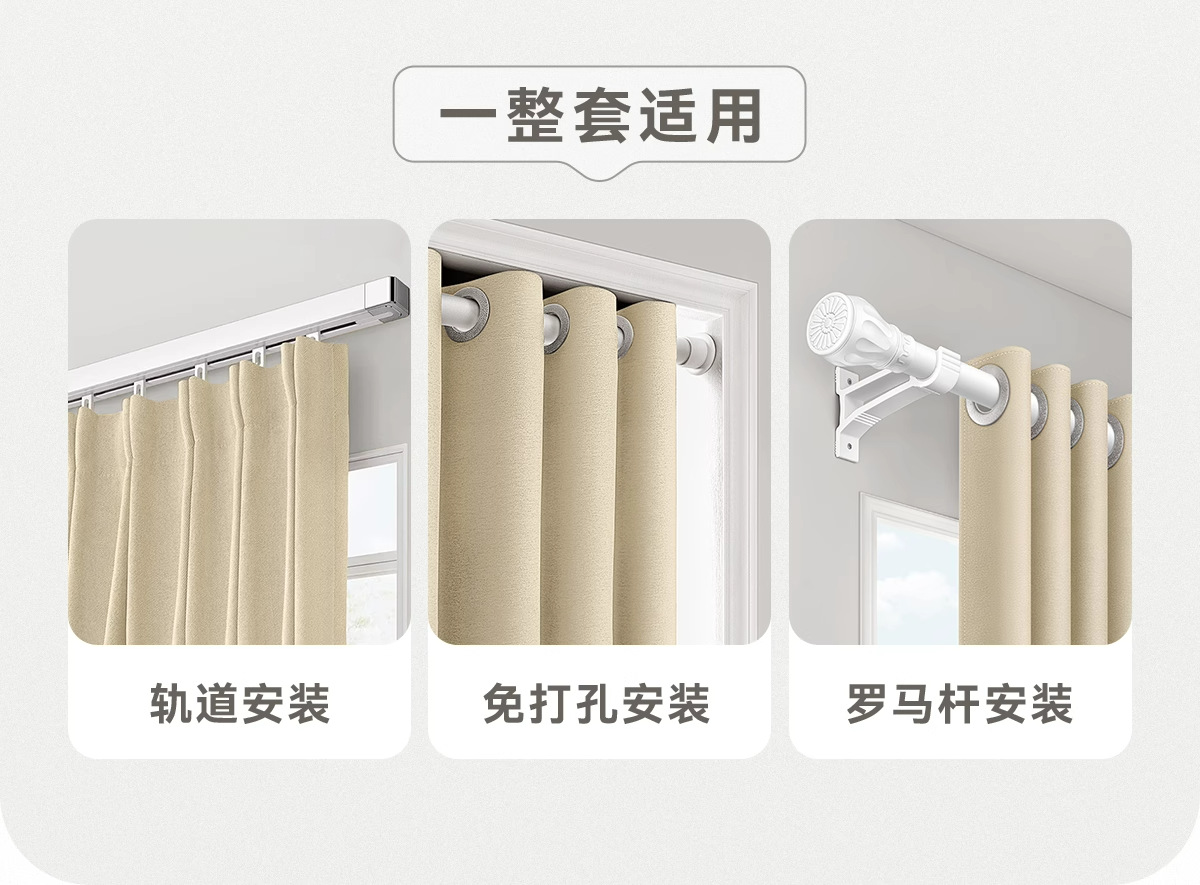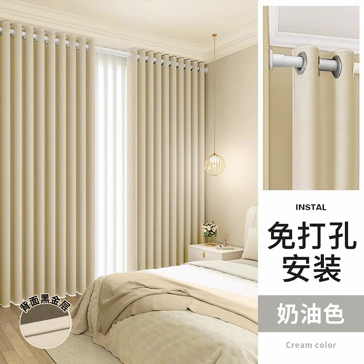 침실 커튼 비 천공 풀 쉐이드 2024 새로운 거실 태양 보호 단열 차양 설치 고급 천 후크 유형