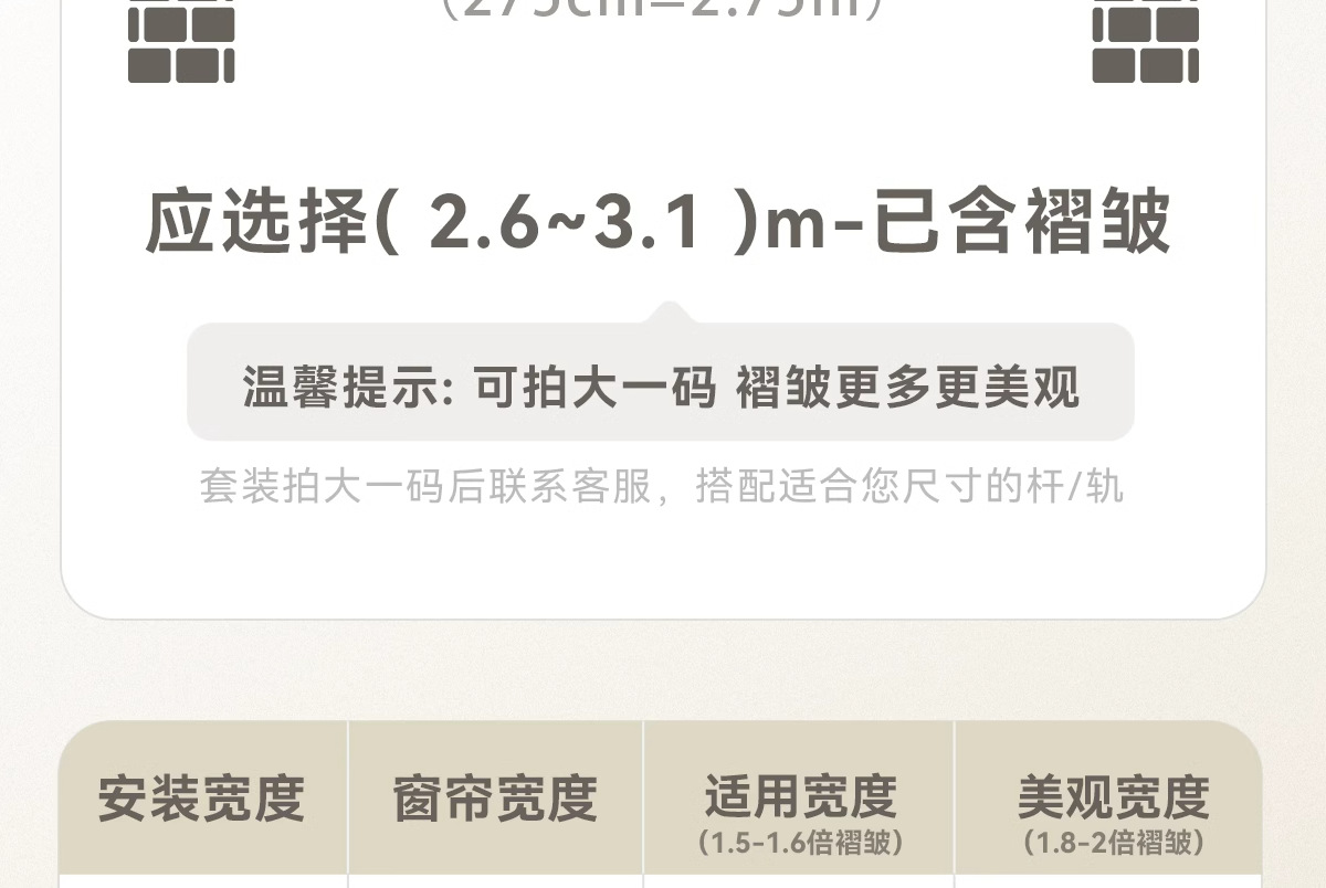 • 적용 벽 폭 2.6-3.1m [커튼 높이 2.7m] * 이중 개구부 2개