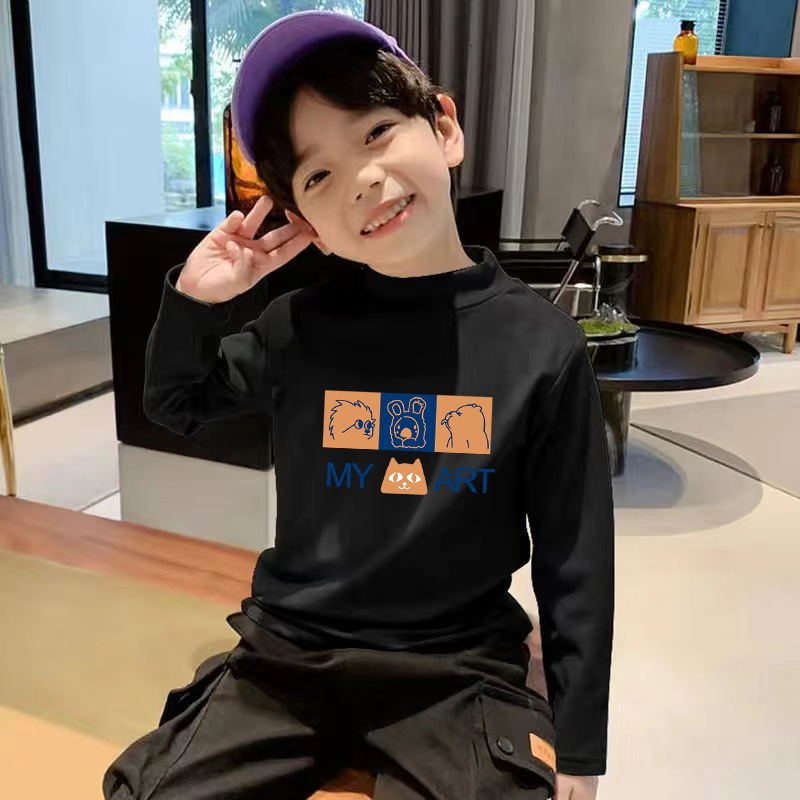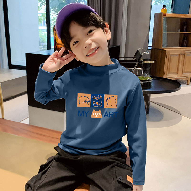 Y2168 # 가을과 겨울을위한 긴 소매 티셔츠 따뜻한베이스 셔츠가있는 남성 아동복 세미 하이 칼라 De Rong 어린이 티셔츠베이스 셔츠