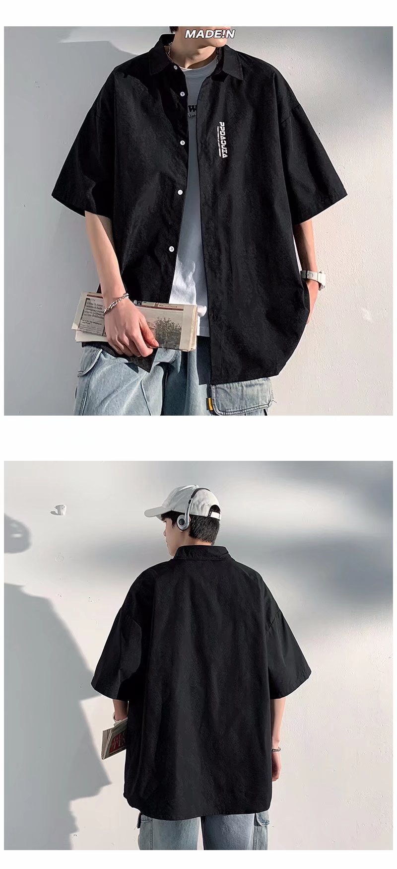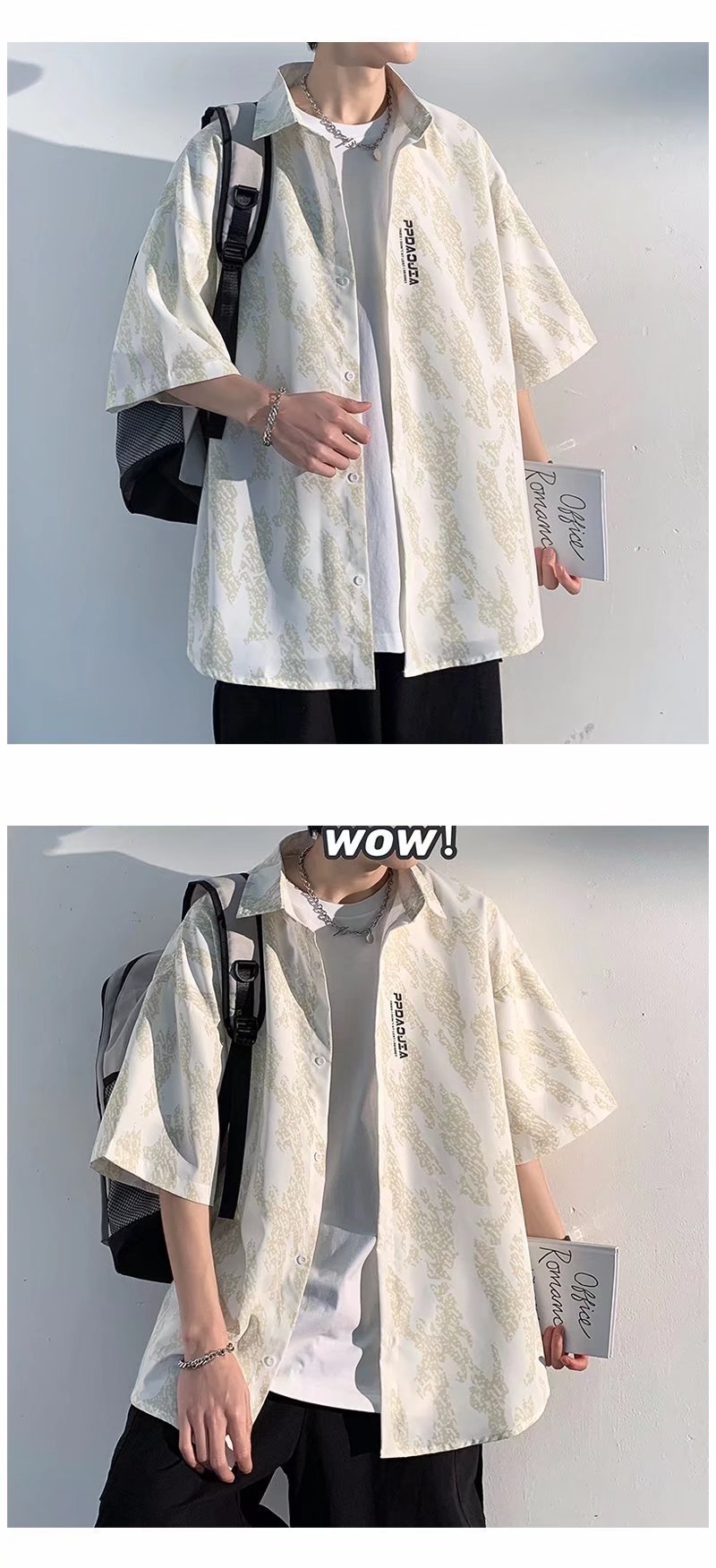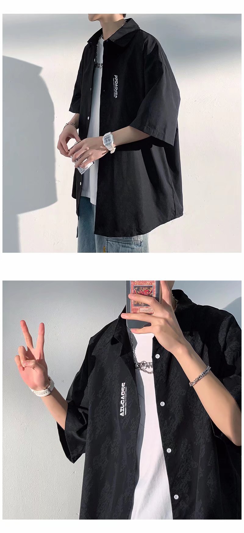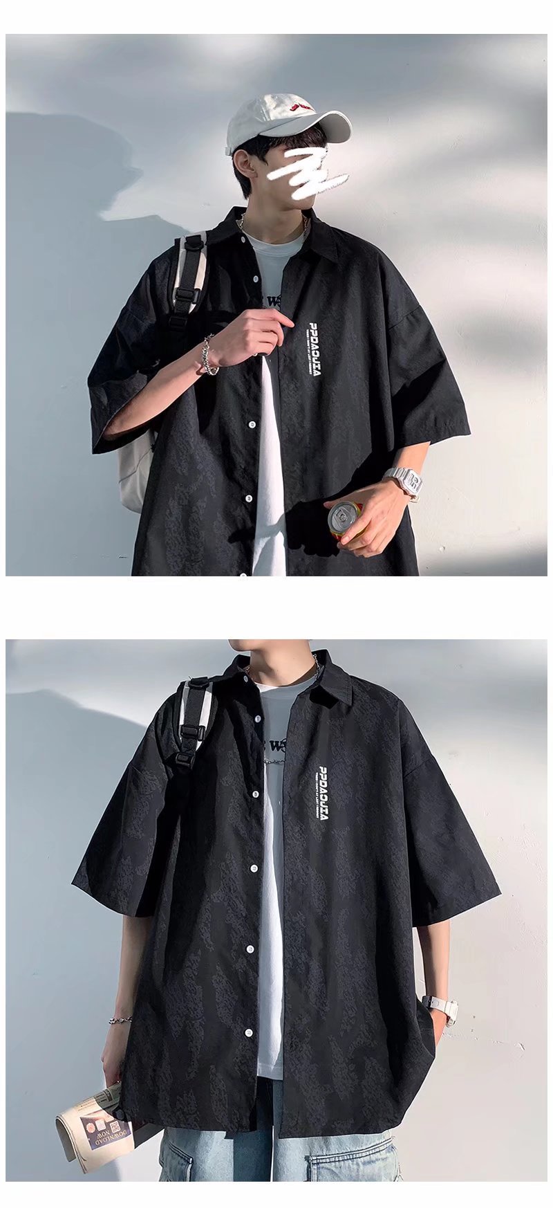 여름 얇은 남자 탑 느슨한 남자 반팔 셔츠 일본 스타일 유행 아이스 실크 셔츠 패션 브랜드스토어 가기