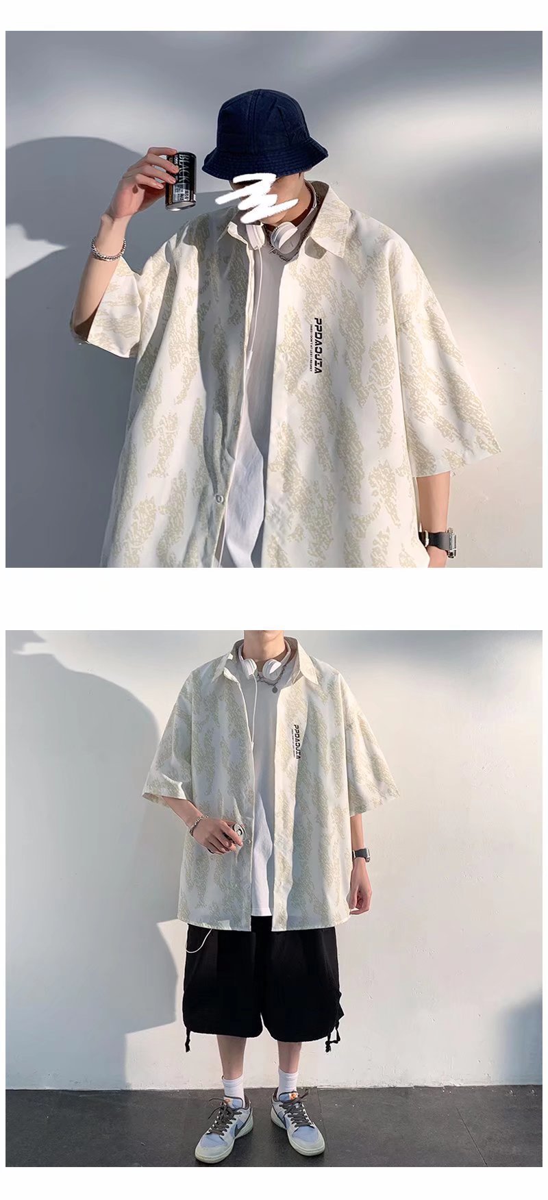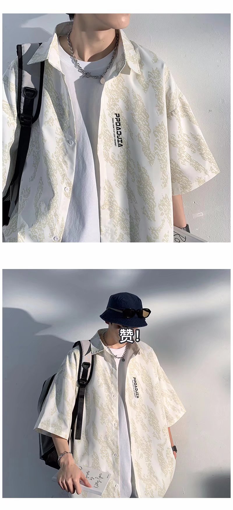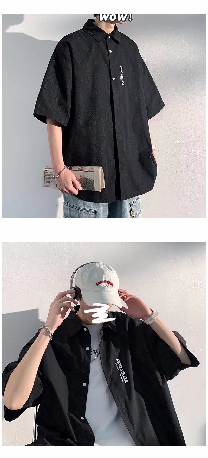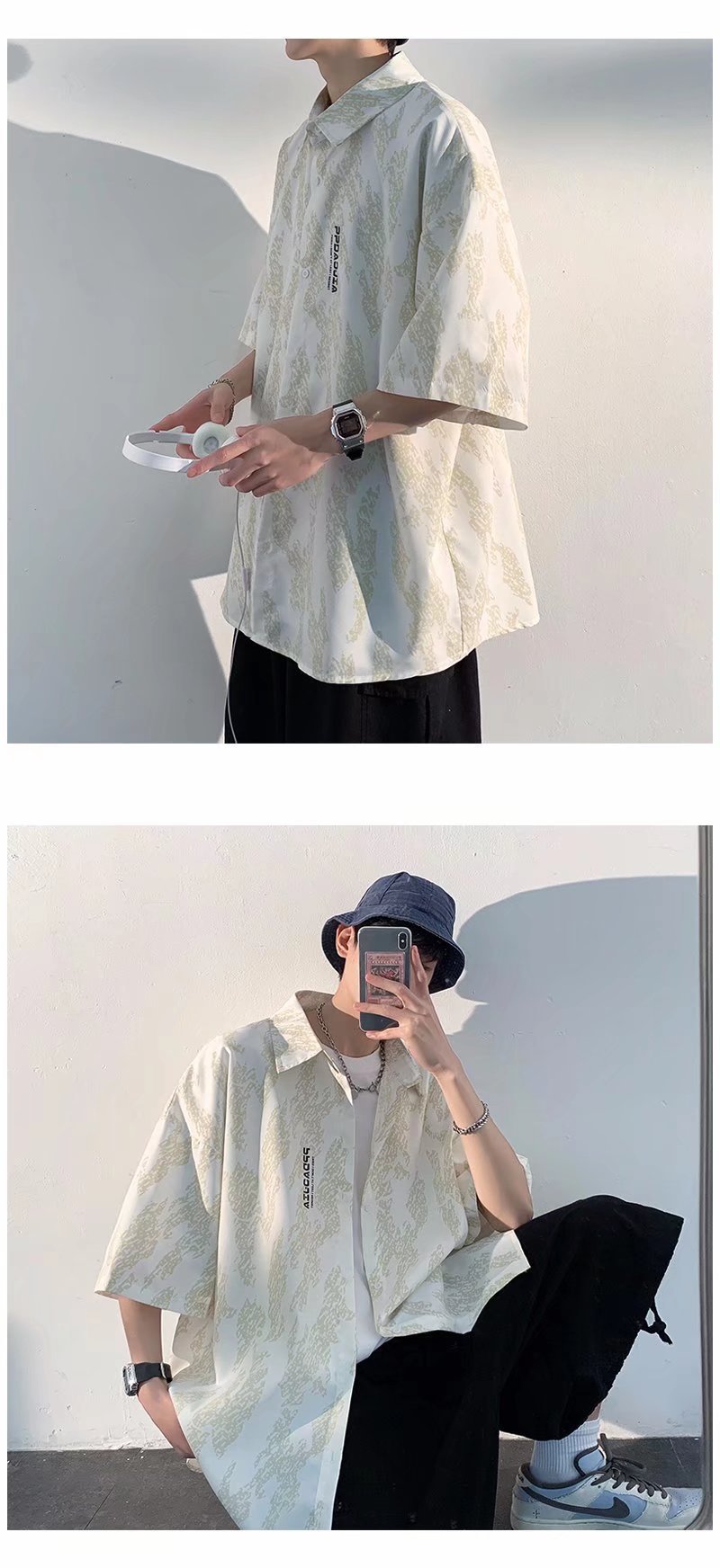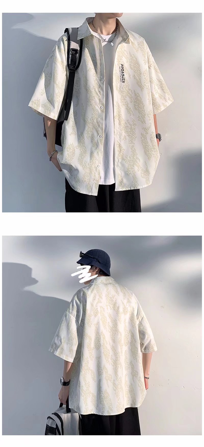 여름 얇은 남자 탑 느슨한 남자 반팔 셔츠 일본 스타일 유행 아이스 실크 셔츠 패션 브랜드스토어 가기