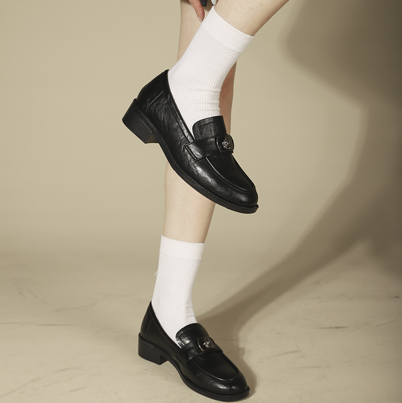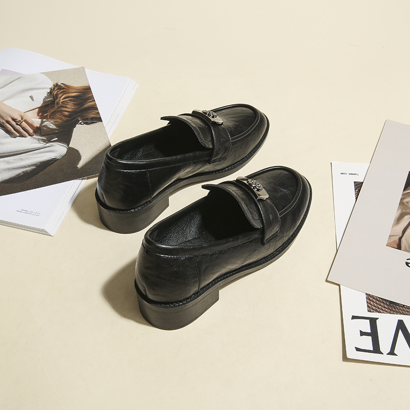 새로운 두꺼운 밑창 로퍼 여성 정품 가죽 신발 싱글 레이어 신발 여성용 두꺼운 슬립 온 신발 금속 버클 동백스토어 가기