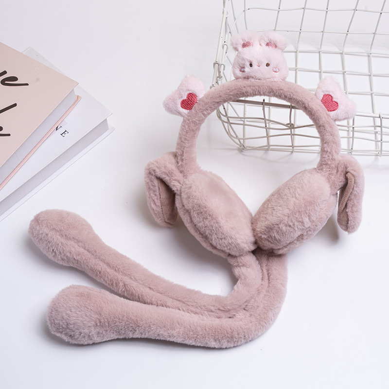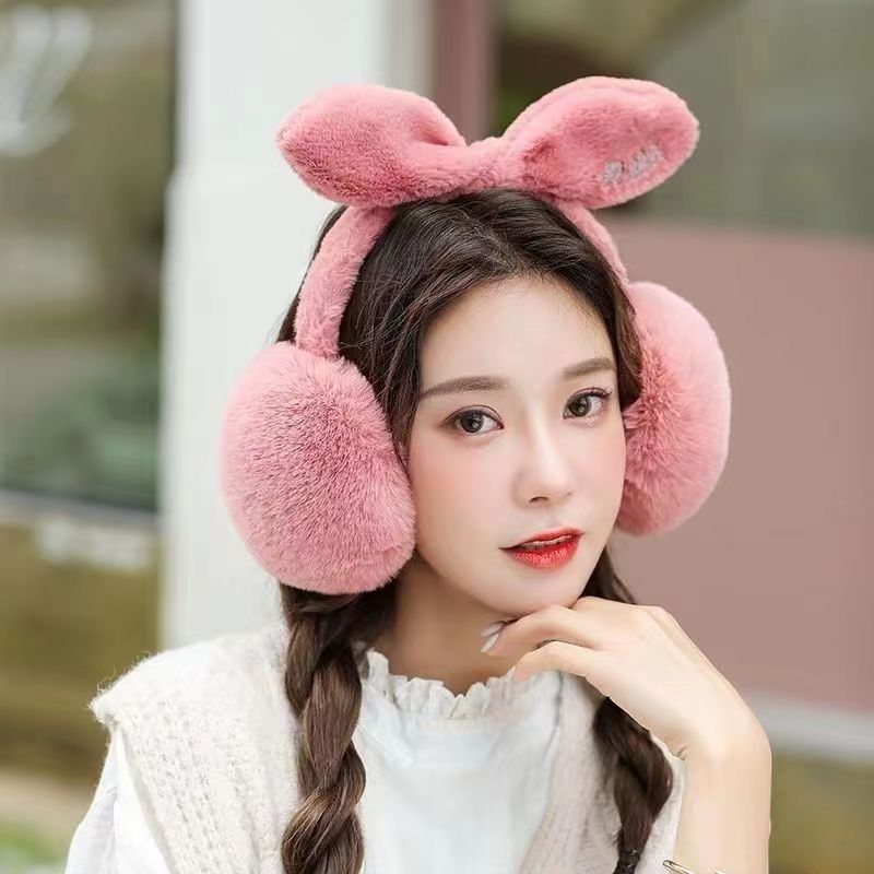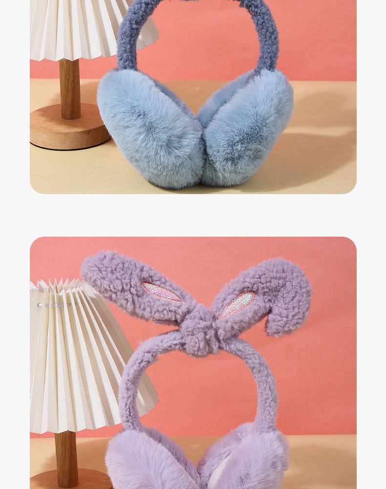 • [곱슬한 토끼 귀마개] 가죽 파우더