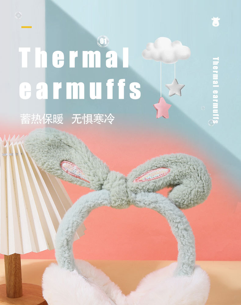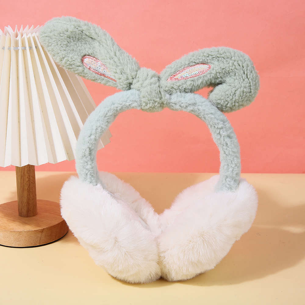 • [곱슬한 토끼 귀마개] 흰색과 녹색
