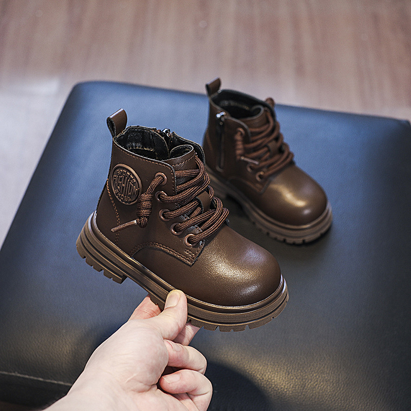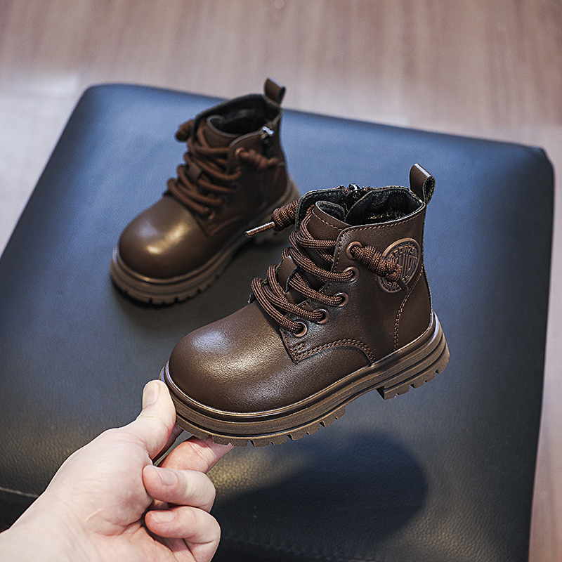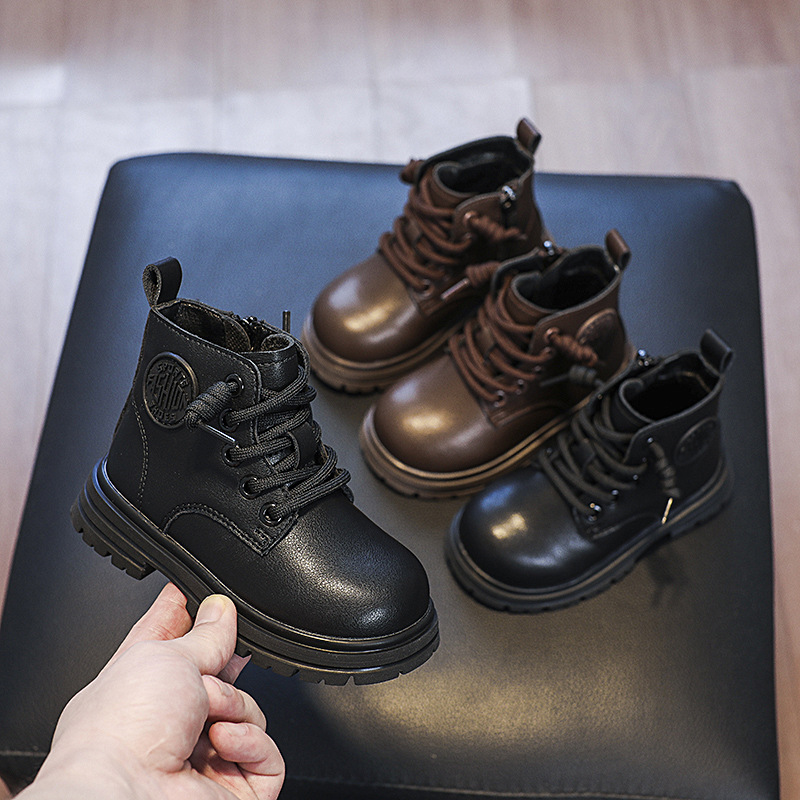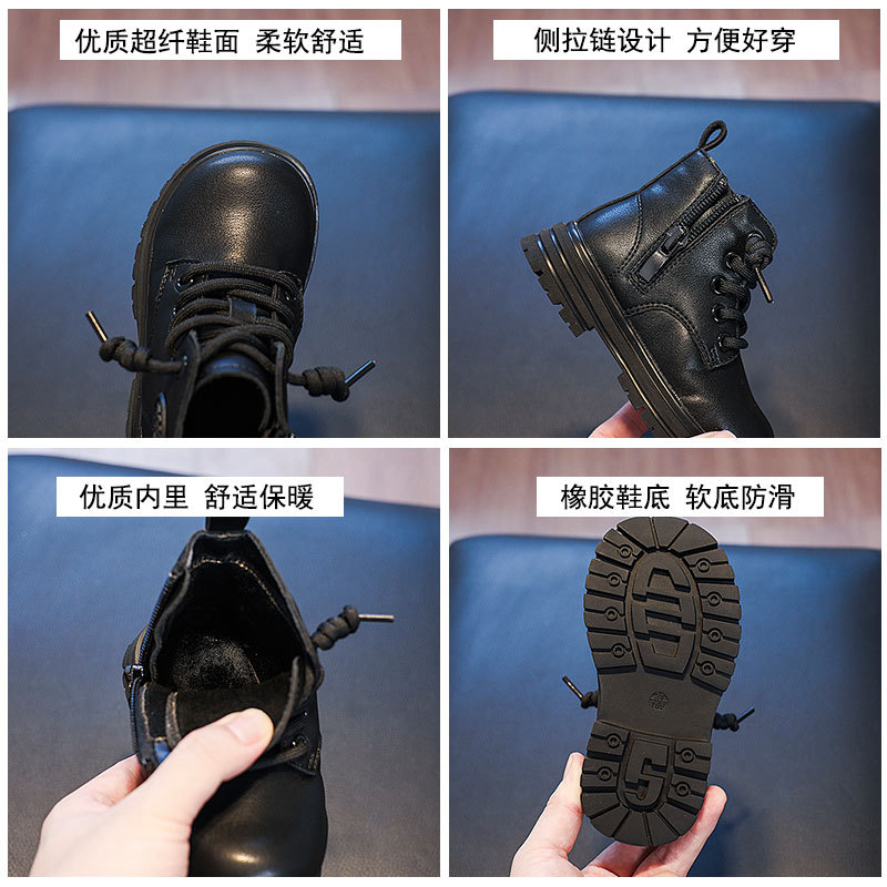 가을과 겨울 영국 스타일 소년 마틴 부츠 어린이 부츠 소녀 싱글 부츠 편안한 기모 사이드 지퍼 베이비 부츠