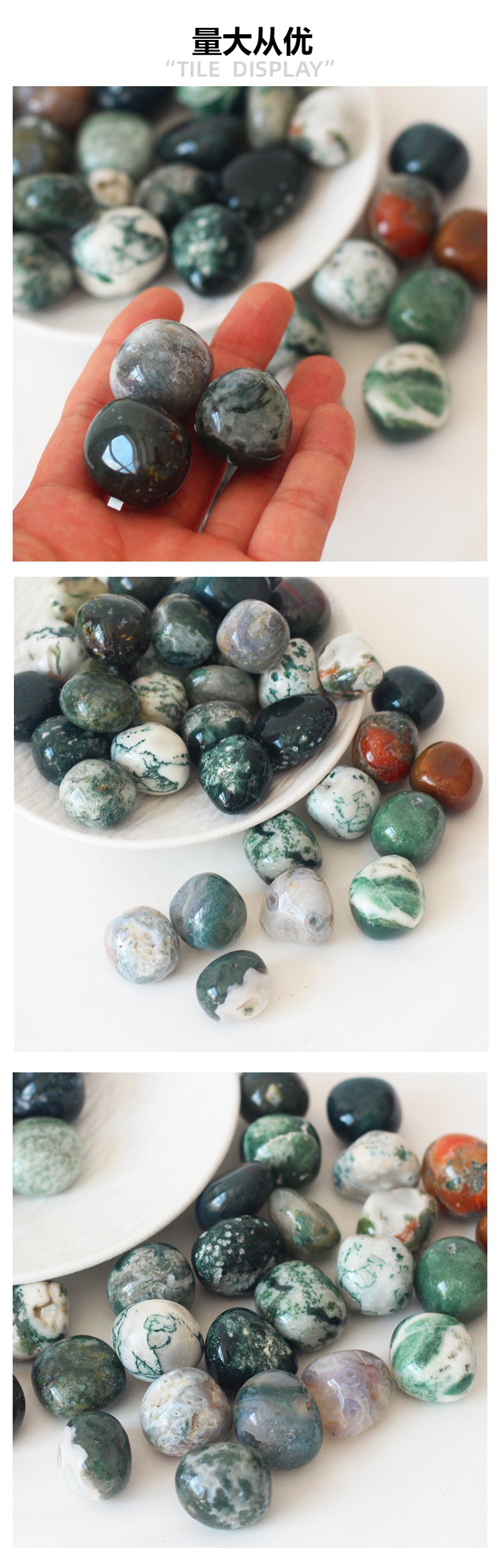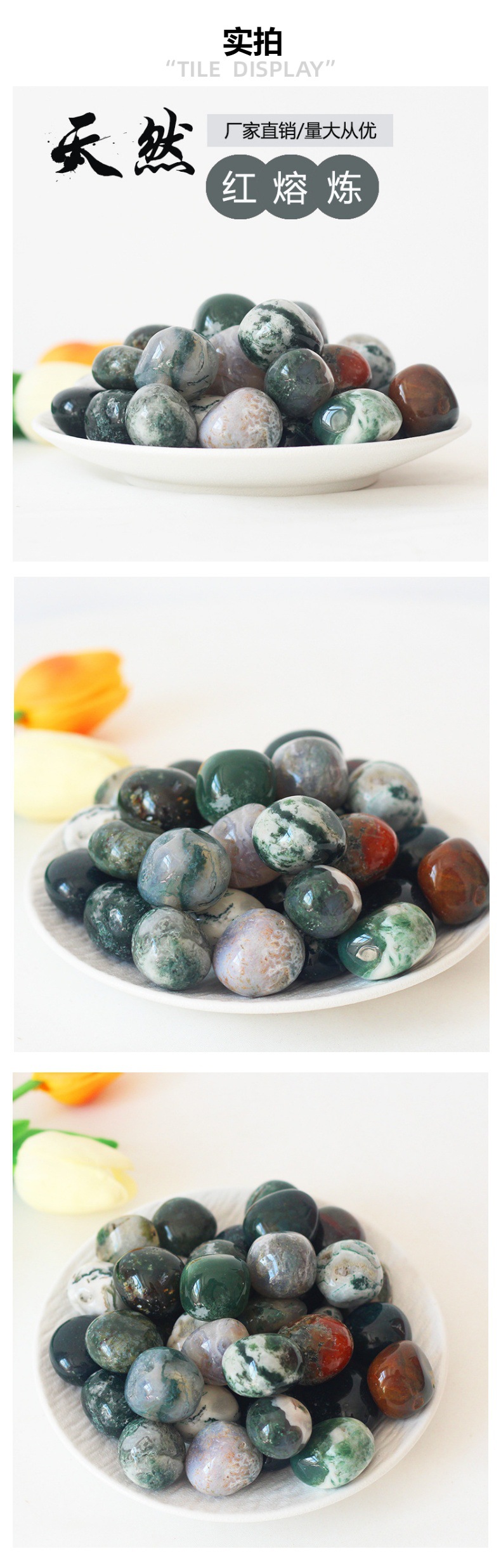 도매 천연 물 잔디 마노 크리스탈 롤링 스톤 큰 입자 분쇄 돌 아로마 테라피 물고기 탱크 돌 풍경 돌 장식