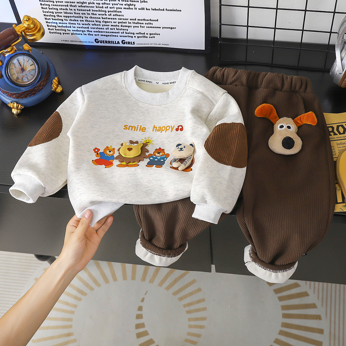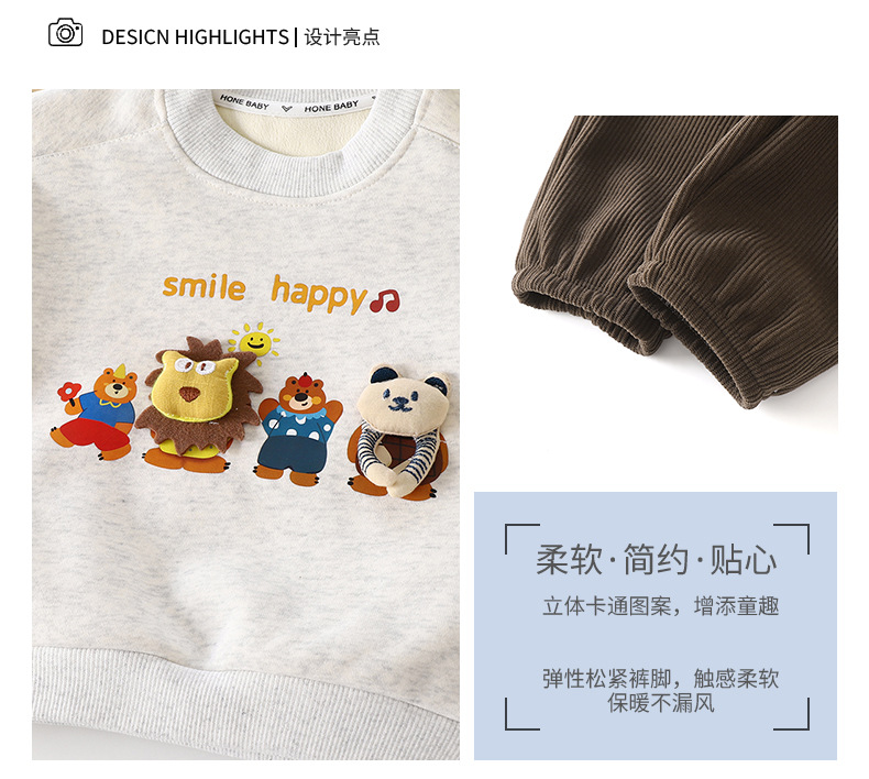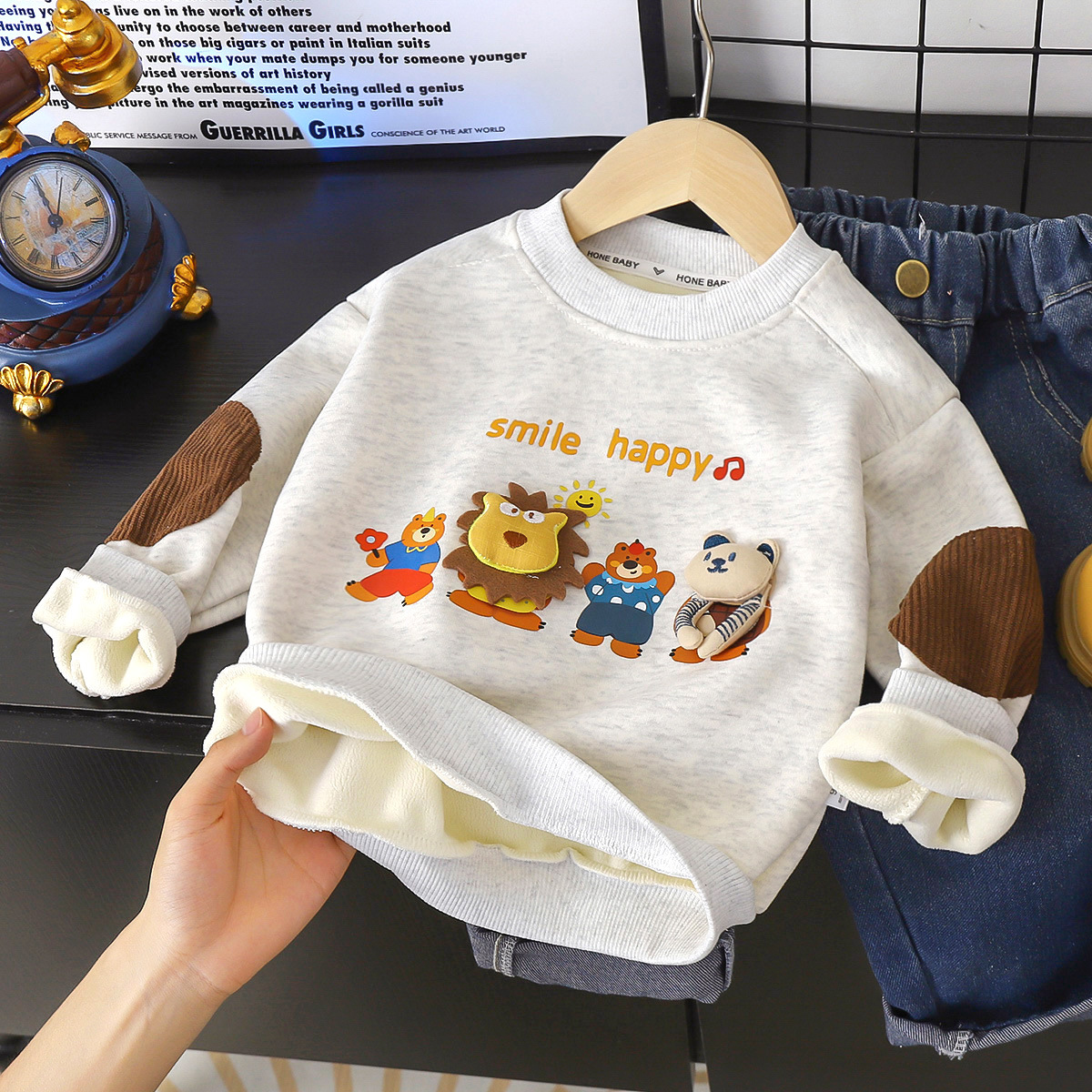 새로운 어린이 기모 스웨터 아기 따뜻한 풀오버 가을과 겨울 한국 스타일 소년 소녀 서양식 바닥 긴 소매 둥근 목스토어 가기