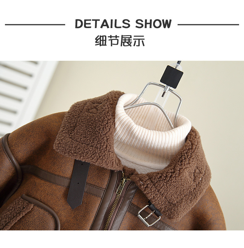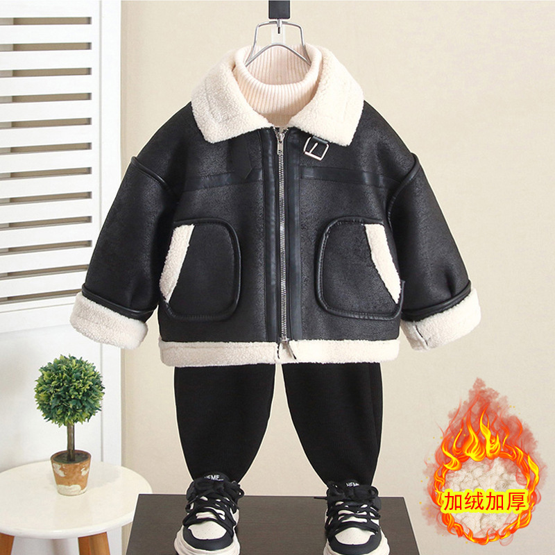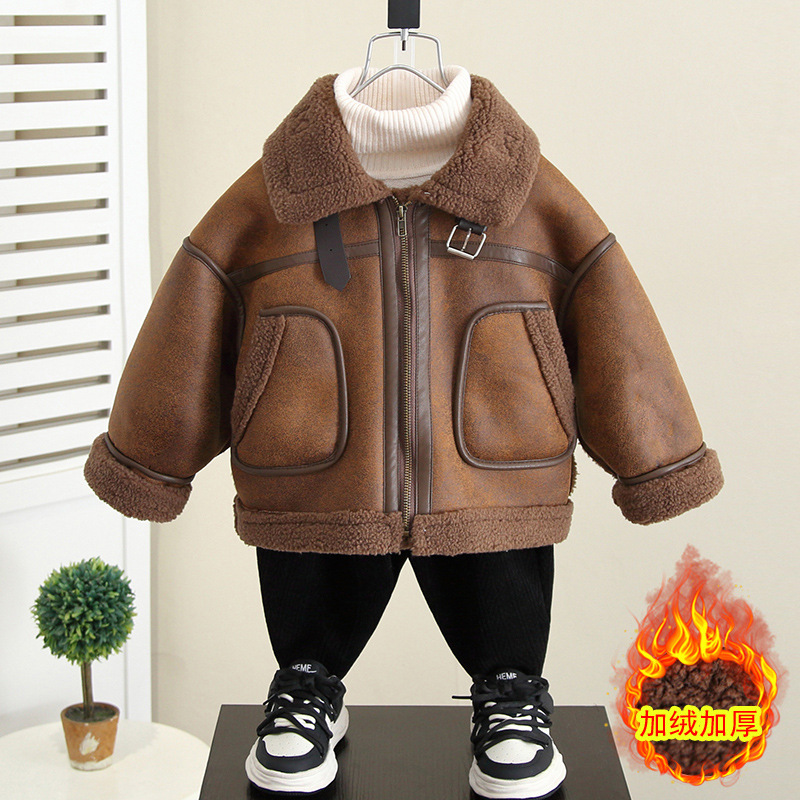 4590 소년 양털 가죽 자켓 가을, 겨울 2025 새로운 아동복 겨울 의류 모피 통합 아기 두꺼운스토어 가기