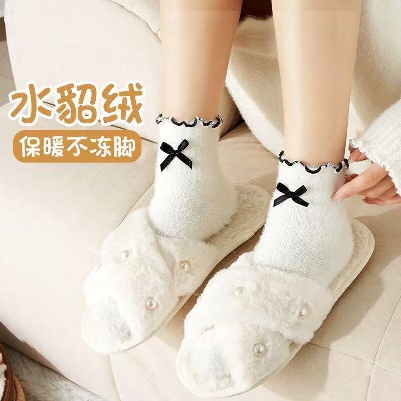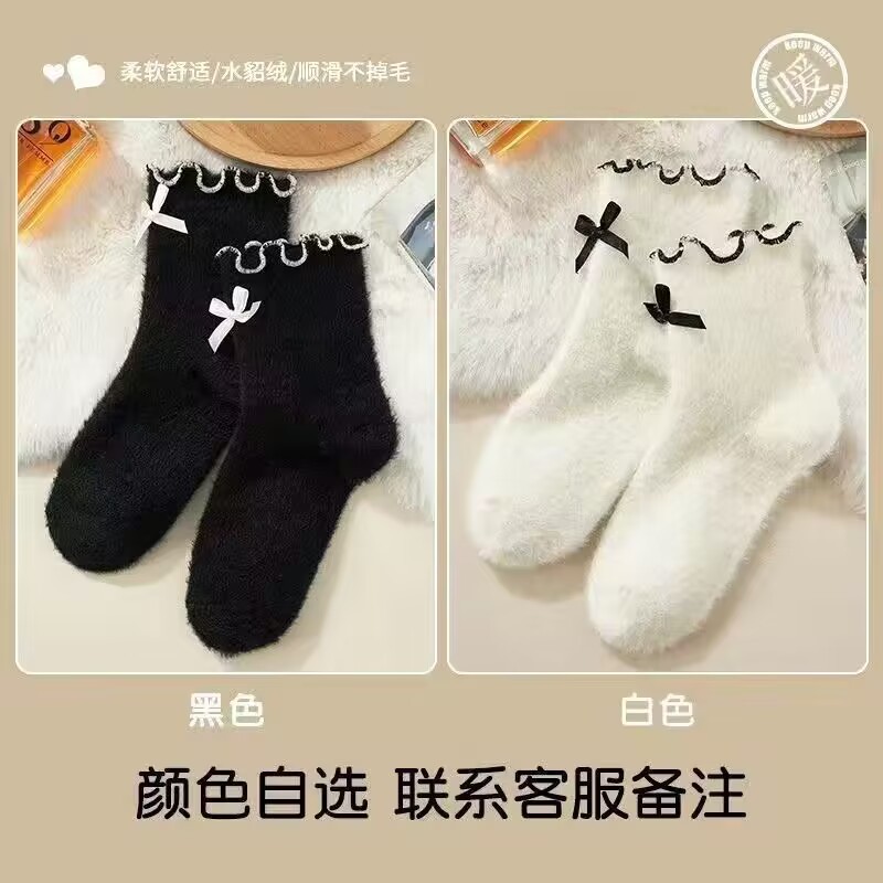 밍크 캐시미어 양말 여성 로리타 한국 레이스 미드 튜브 양말 가을과 겨울 소녀 화이트 더미 양말 귀여운 활스토어 가기
