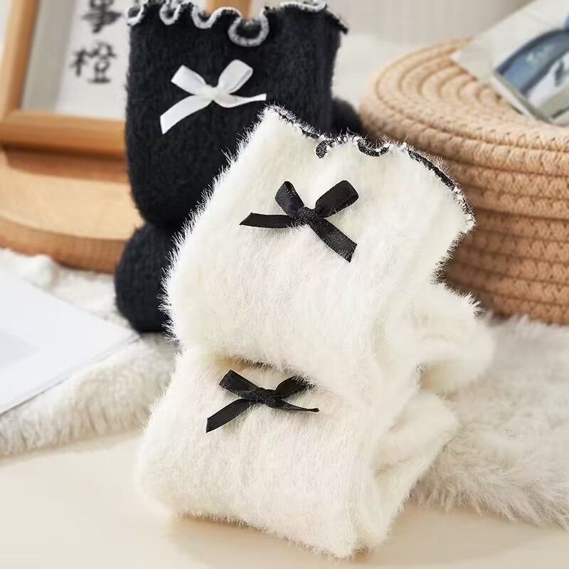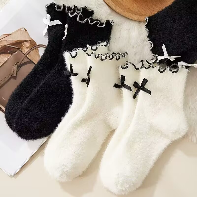밍크 캐시미어 양말 여성 로리타 한국 레이스 미드 튜브 양말 가을과 겨울 소녀 화이트 더미 양말 귀여운 활
