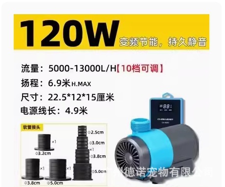 Chuangning 가변 주파수 워터 펌프 매우 조용한 어항 펌핑 어풀 잠수정 펌프 수륙 양용 여과 순환 해수 소형 펌프스토어 가기