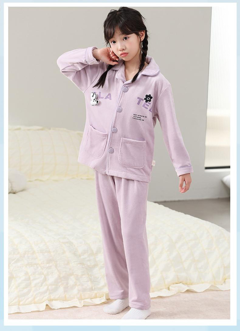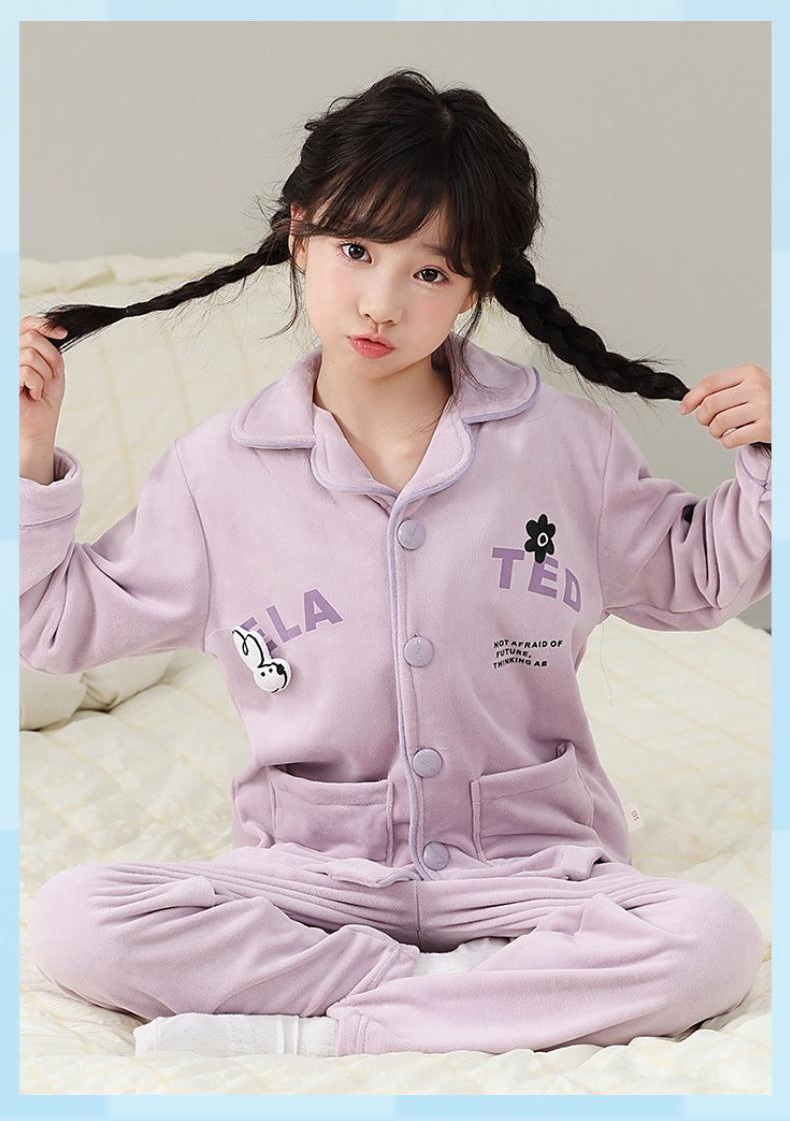소녀 섬 벨벳 파자마 2024 새로운 어린이 플란넬 세트 겨울 큰 어린이 얇은 벨벳 코랄 벨벳 홈 옷스토어 가기