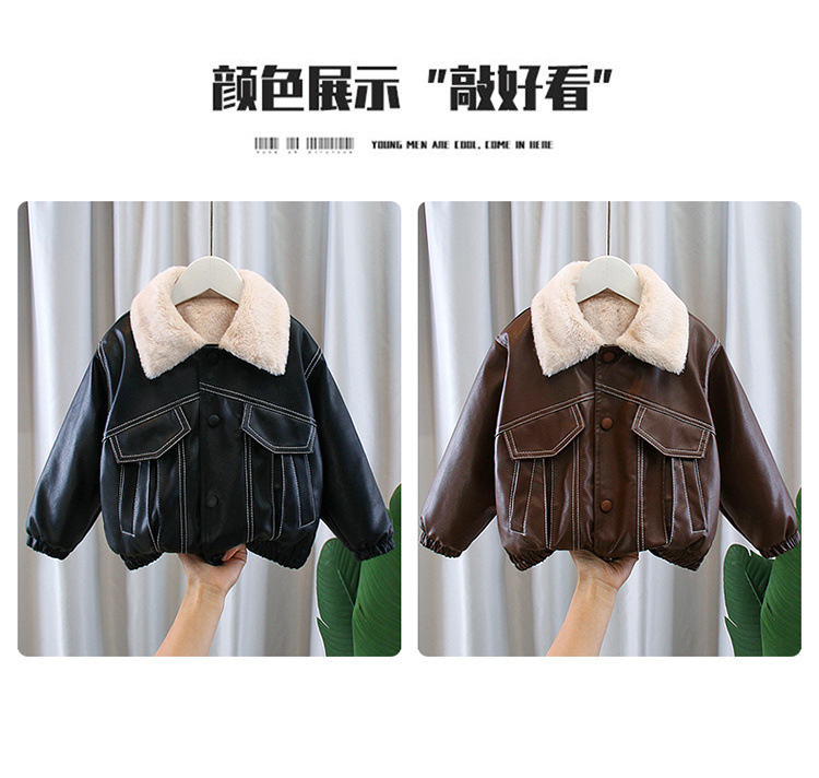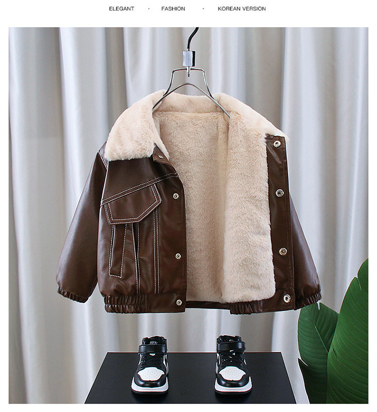 어린이 의류 소년의 멋진 가죽 자켓 24 새로운 스타일 서양식 아기의 가을 겨울 의류 어린이 한국 스타일 기모 두꺼운 가죽 자켓