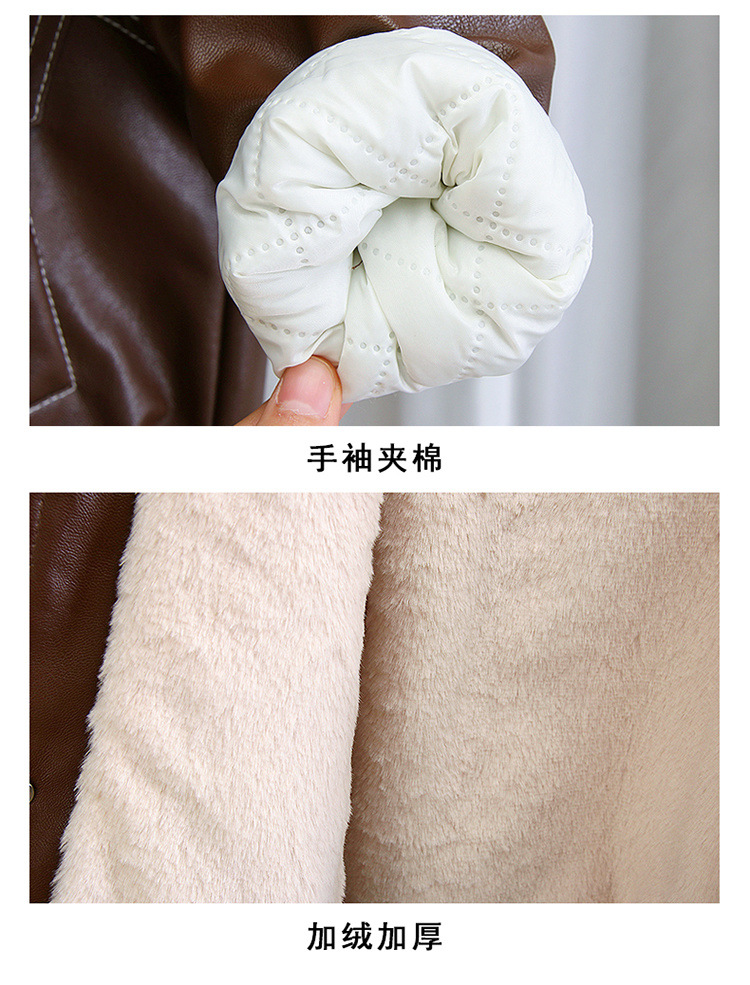 • 스퀘어넥 가죽자켓 플러스 벨벳과 도톰한 [브라운]