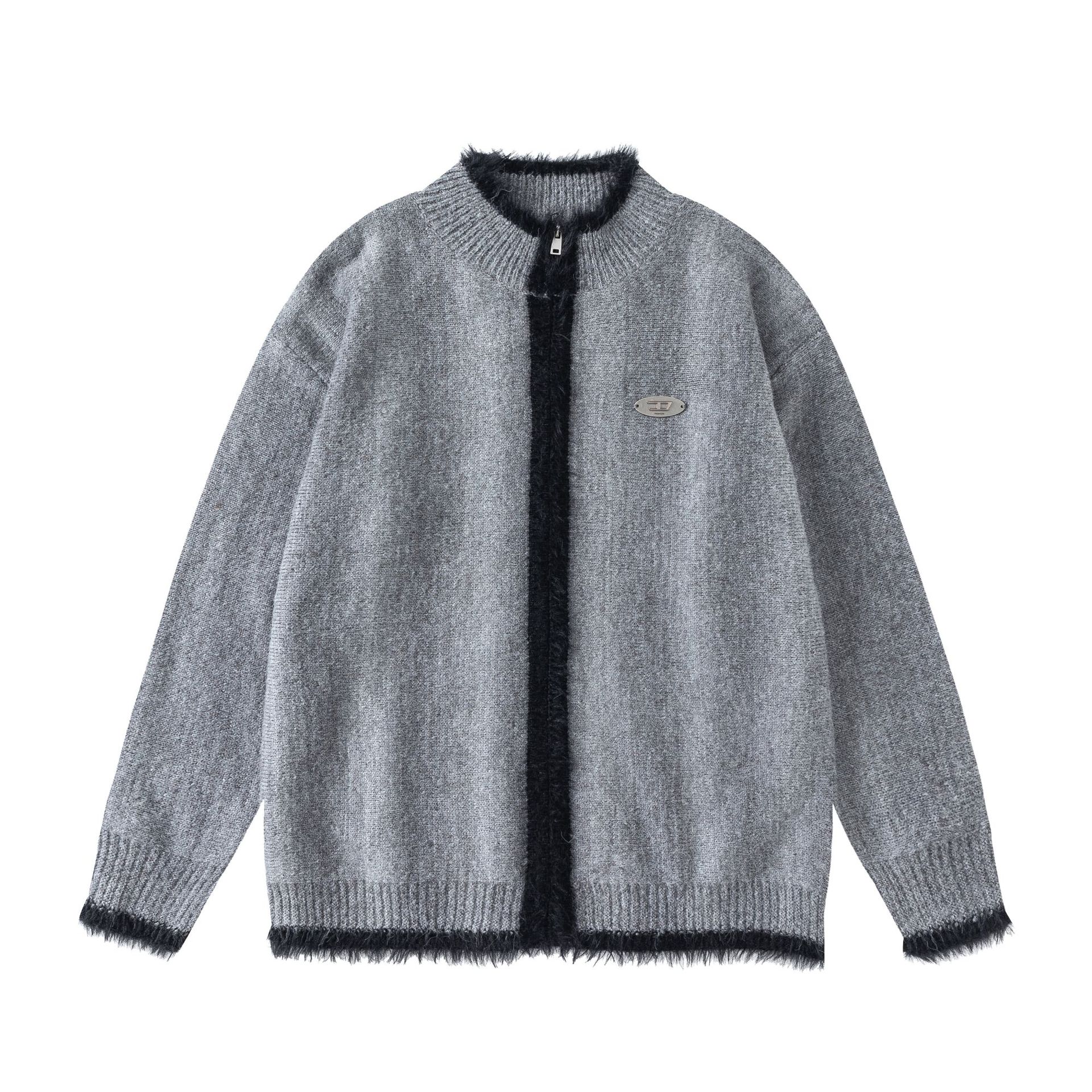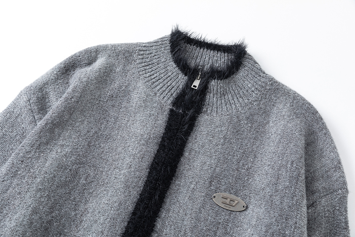 Jiayiku 남성복 2025 신상품 아메리칸 레트로 스타일 모조 밍크털 보온 니트 재킷 지퍼 카디건 스웨터 남성용스토어 가기