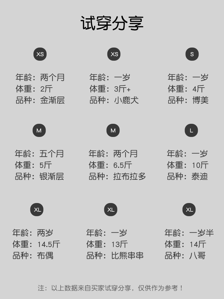 • XS(가슴둘레 30cm) 추천 0.5-1.5kg
