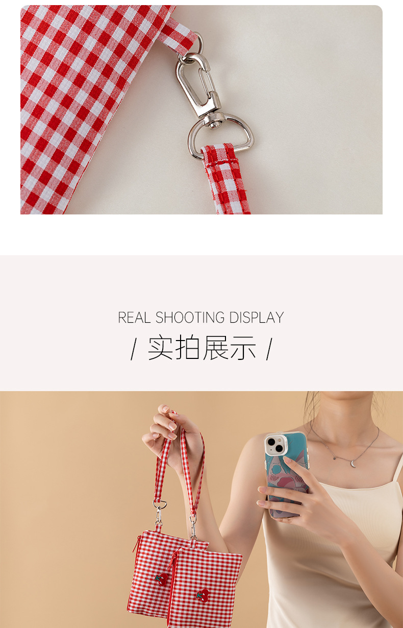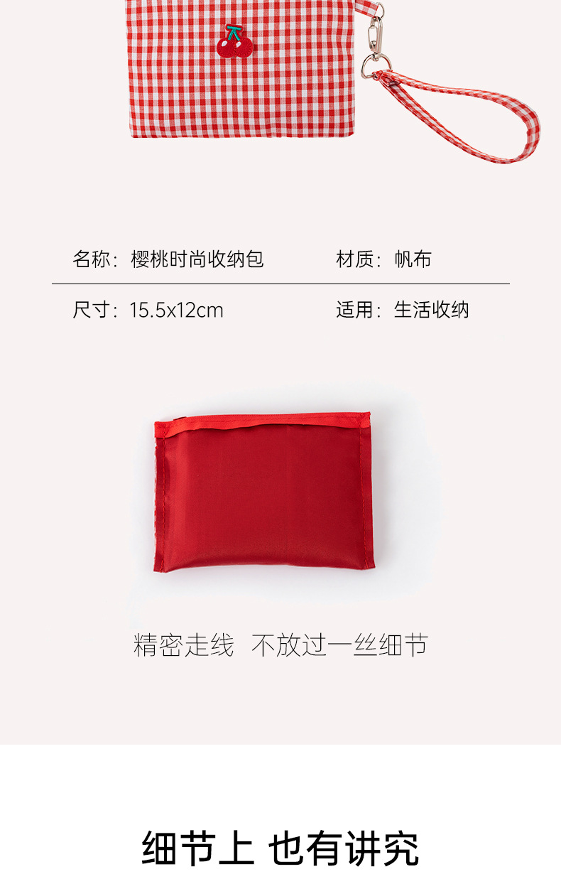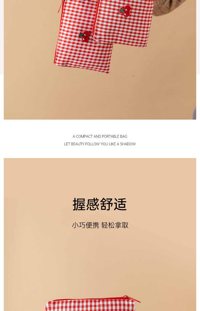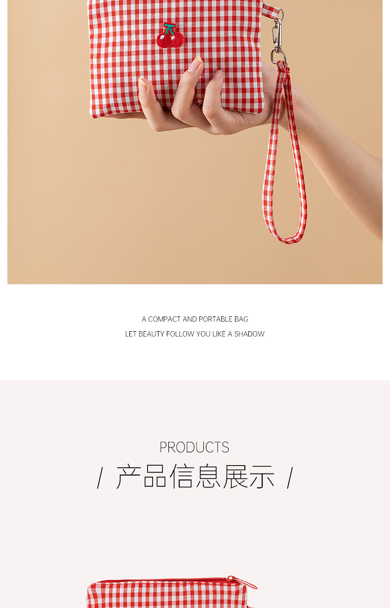 자수 체리 귀여운 화장품 가방 휴대용 빨간 격자 무늬 대용량 화장품 손 립스틱 보관 가방스토어 가기