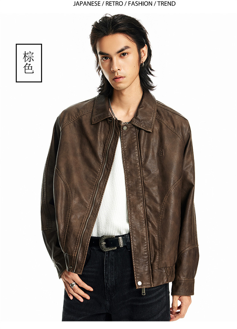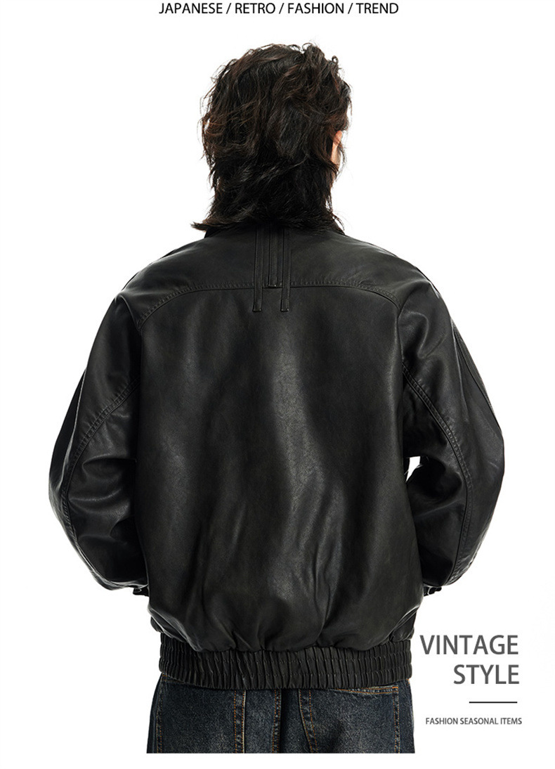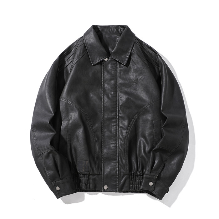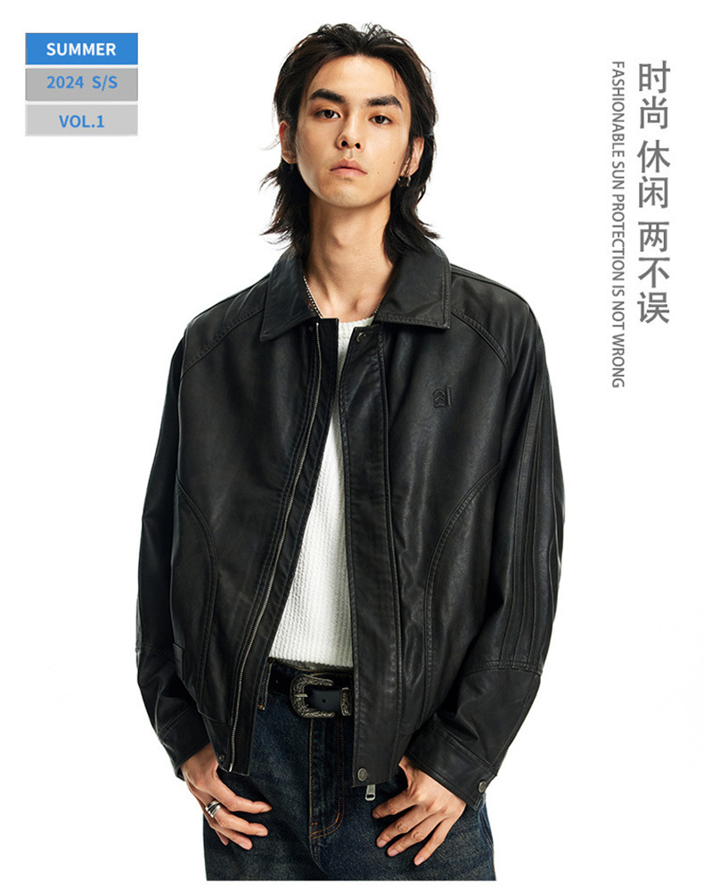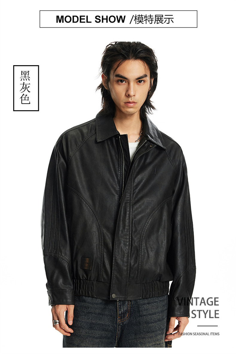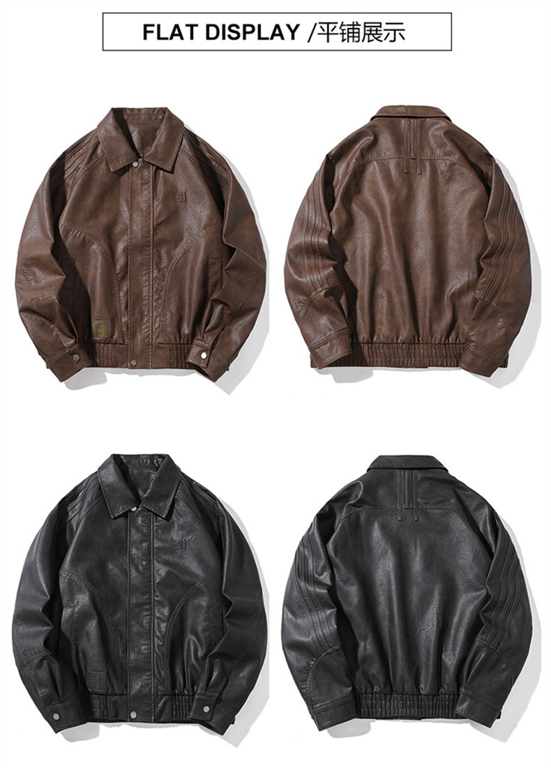 2024秋季新款PU皮衣夹克外套男美式复古宽松美拉德皮夹克机车服潮