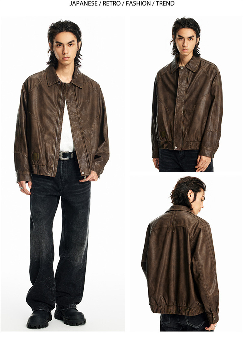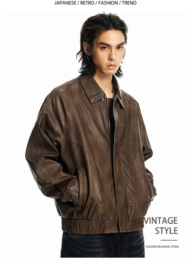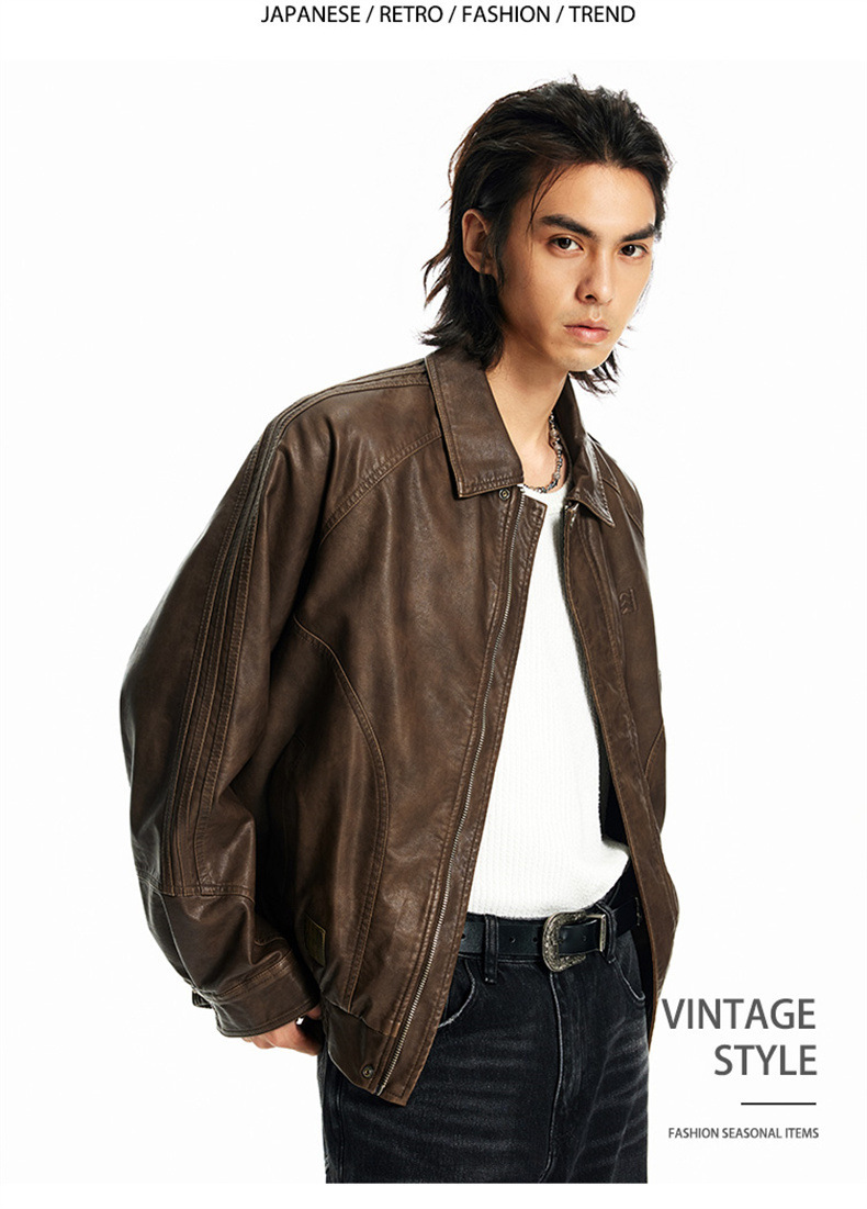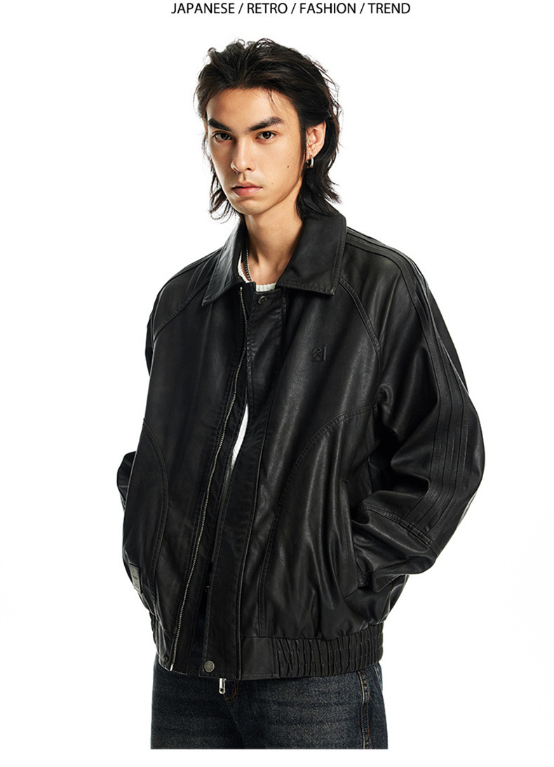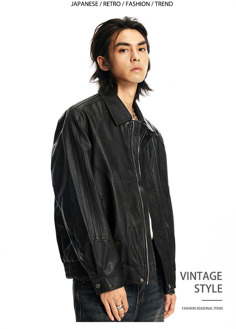 2024秋季新款PU皮衣夹克外套男美式复古宽松美拉德皮夹克机车服潮