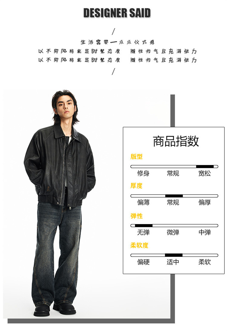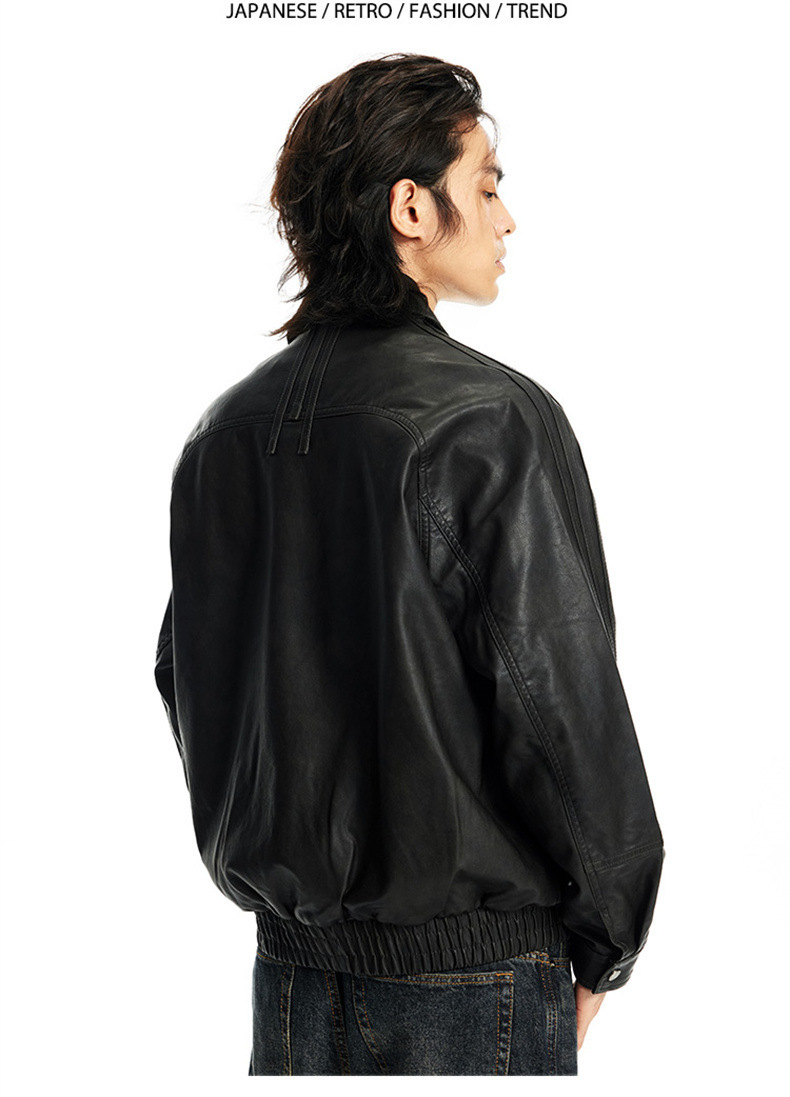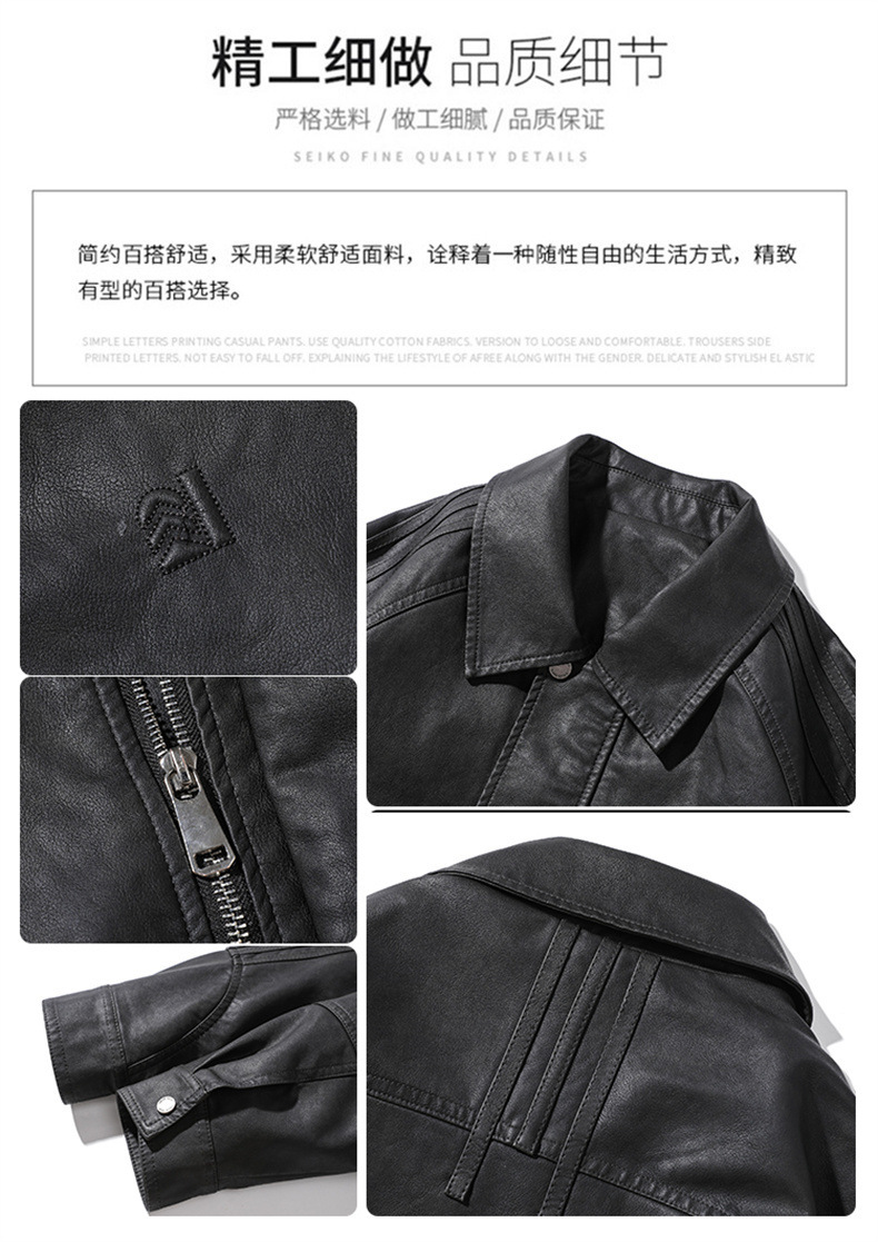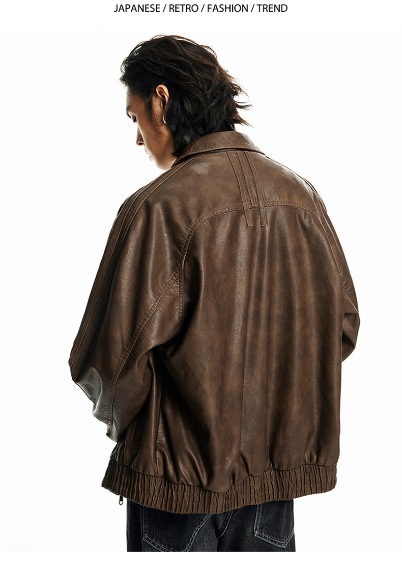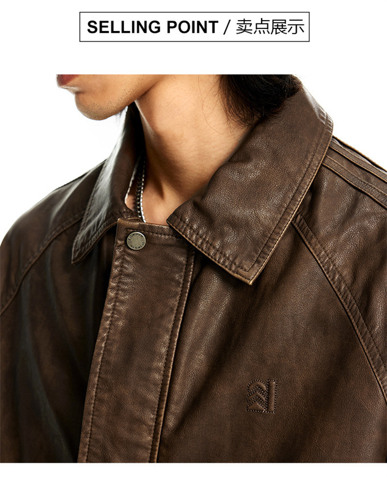 2024秋季新款PU皮衣夹克外套男美式复古宽松美拉德皮夹克机车服潮
