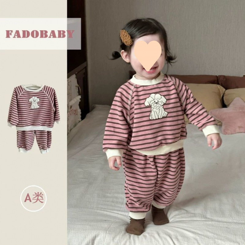 여자 줄무늬 정장 가을 옷 가을 2025 한국 스타일 유아 소녀 만화 운동복 바지 2 조각 정장스토어 가기