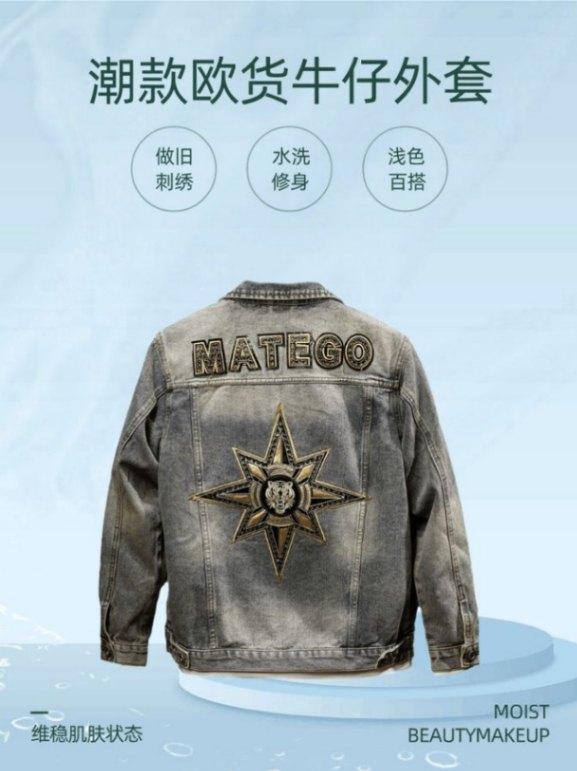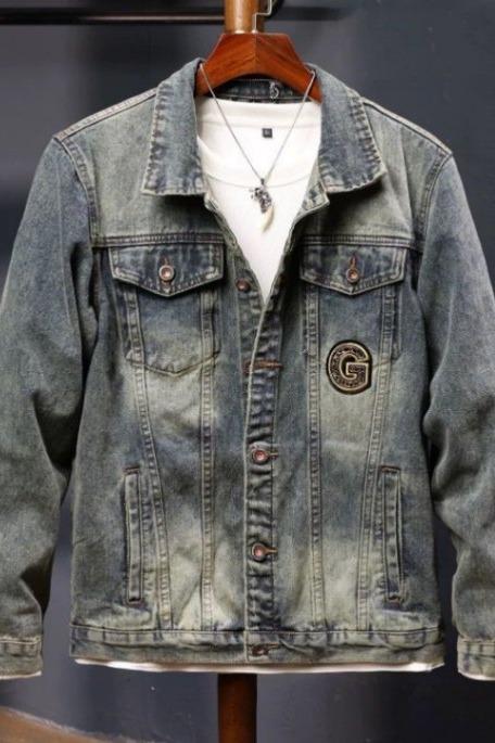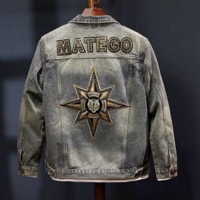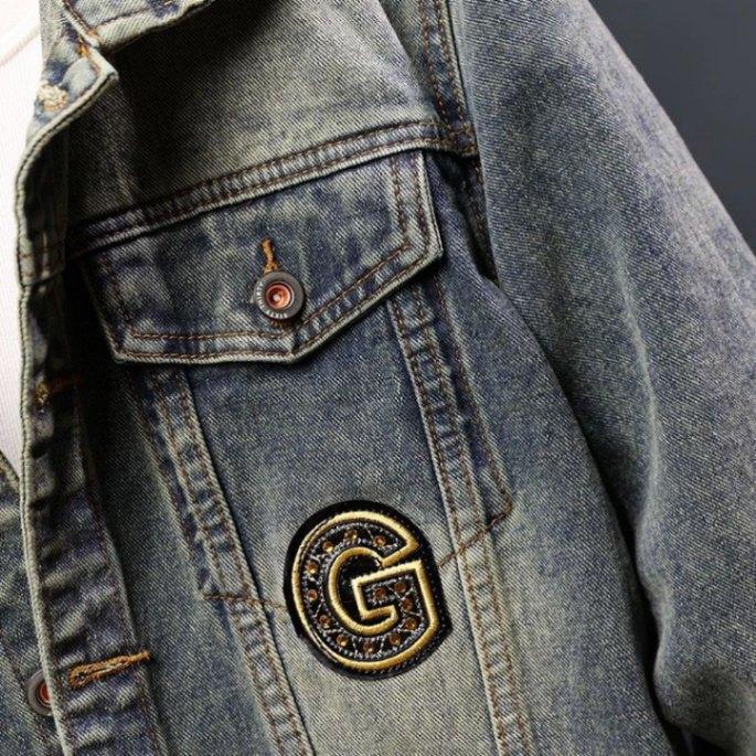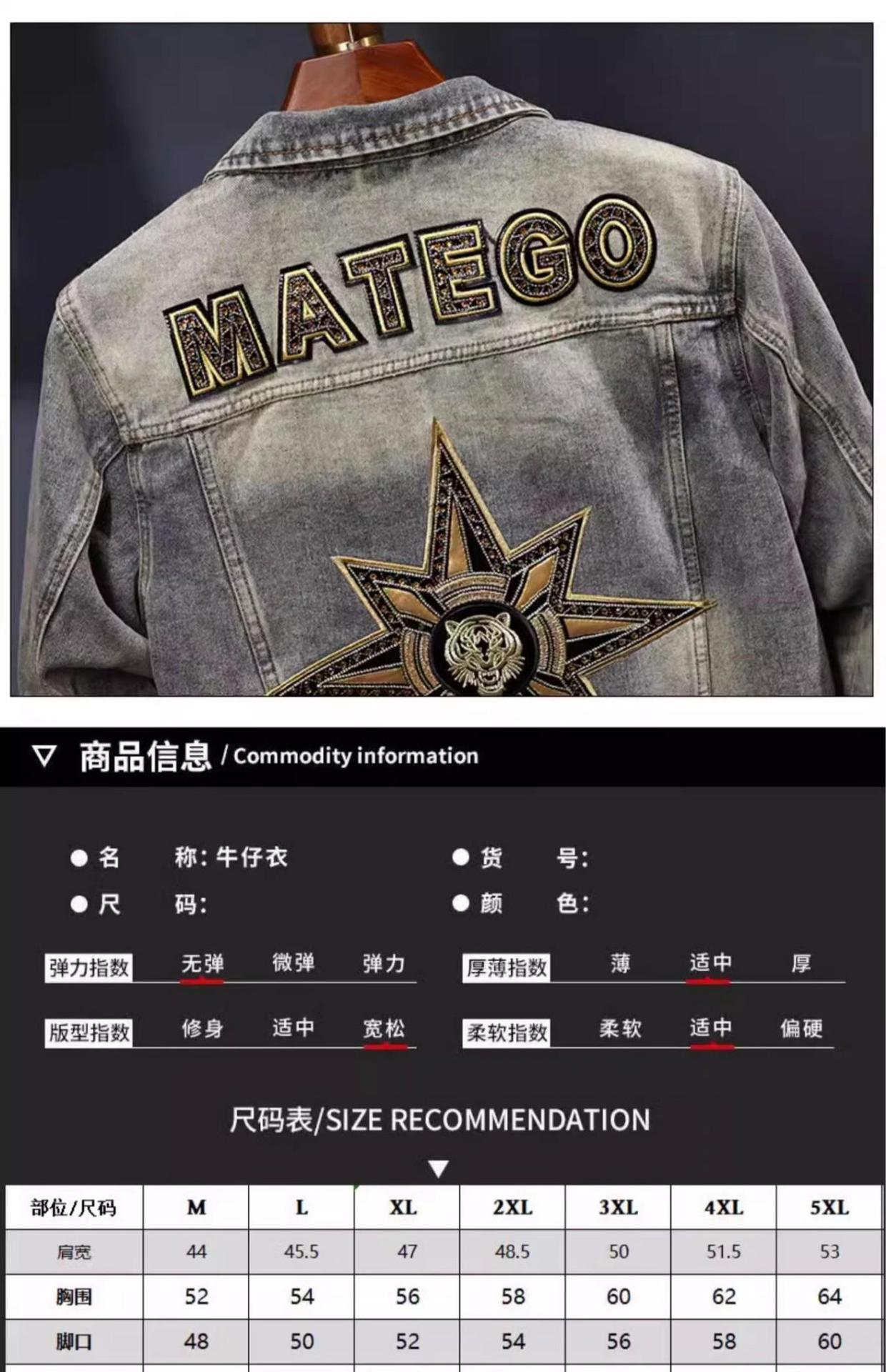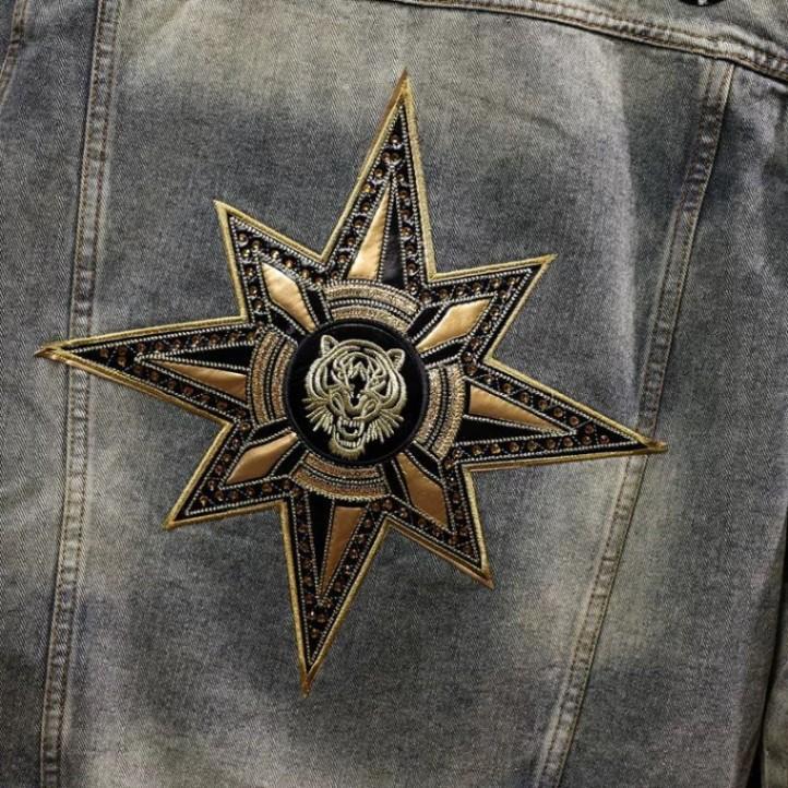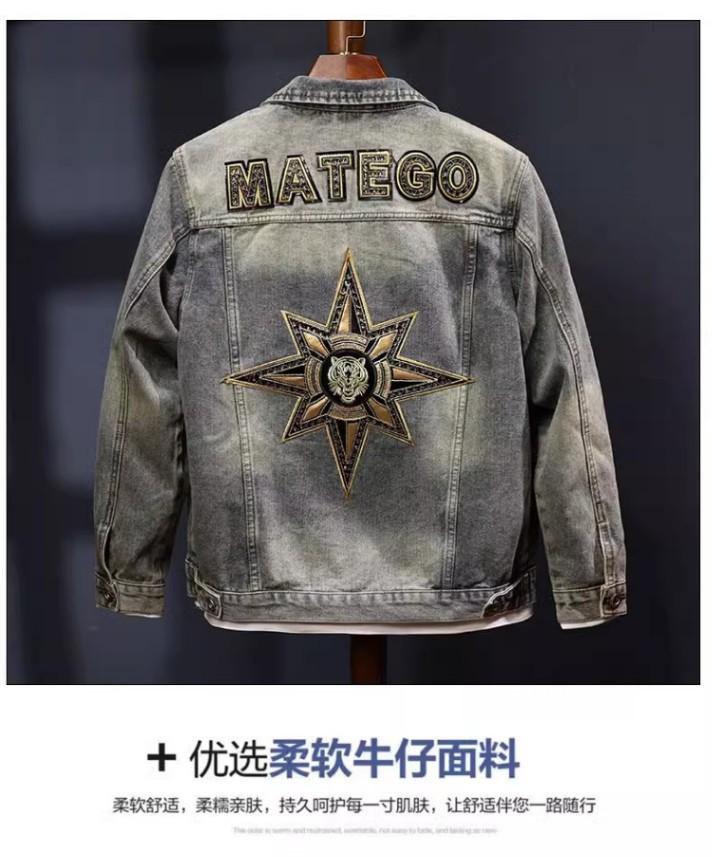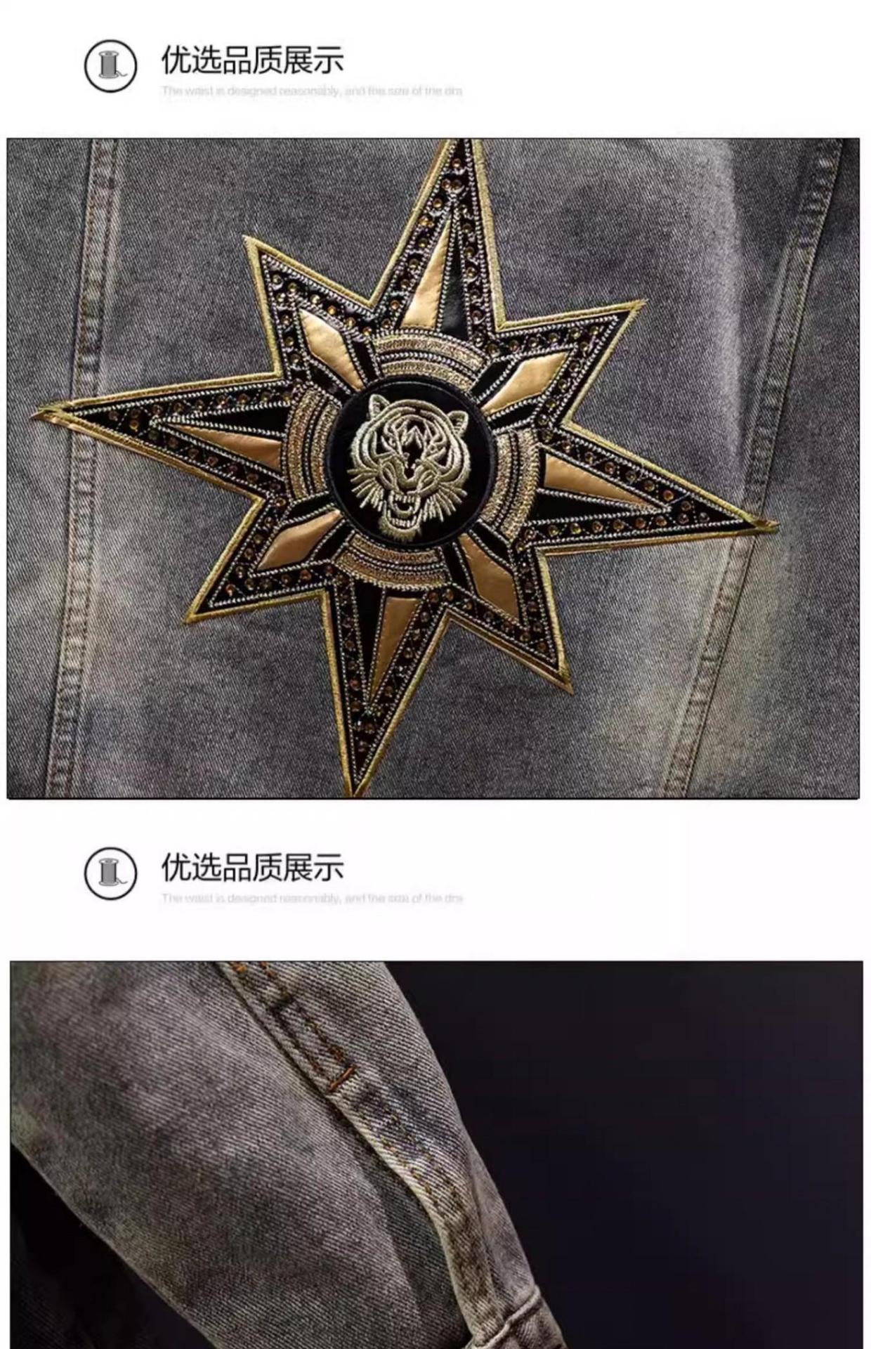 높은 고급 유럽 상품 자수 패션 남성 데님 코트 2024 봄과 가을 새로운 스타 오토바이 재킷 빈티지 코트